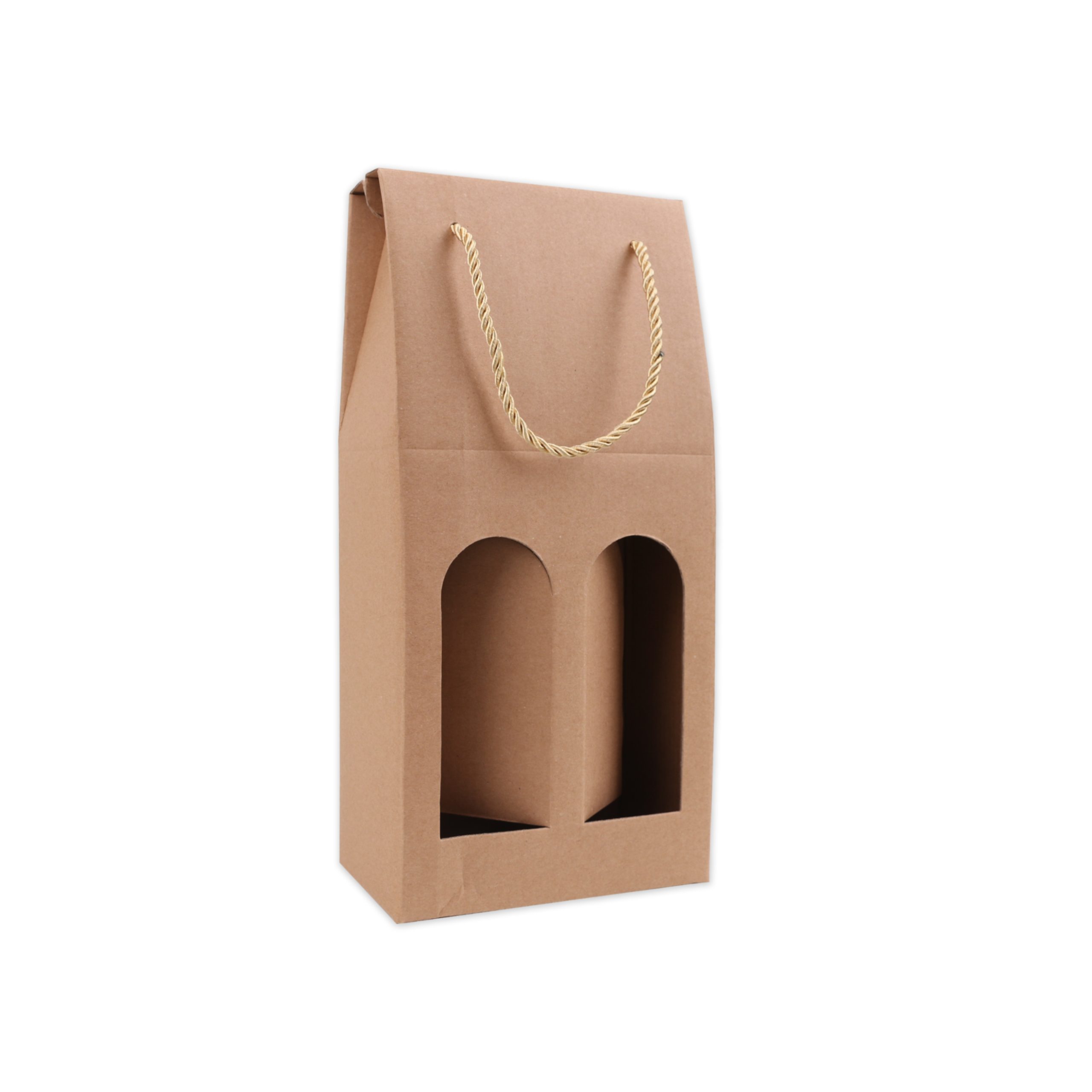 Get your branding seen, on the go, with our Double Bottle Portable Wine Box. Made of 300 gsm corrugated paper and 120 gsm kraft paper for durability. With screen print highlight your design. The compact box design can be assembled from a flatpack into a wine box in just seconds. Two windows on the wine box, allows you to clearly see the wines inside. Complete with top handle for easy carrying, making it the perfect choice for your next wine box.