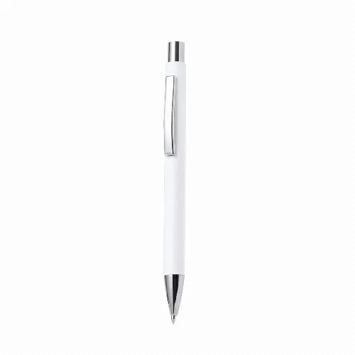 [description] => Push action plastic ballpoint pen with solid white body and clip. Designed in Europe, it features a silver tip and contrasting coloured trim under the clip.