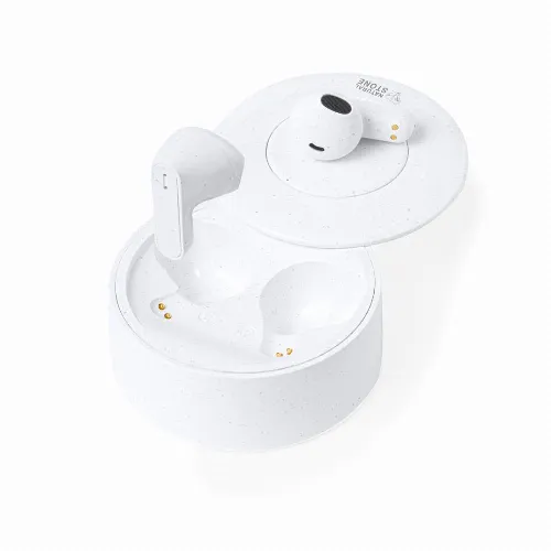 With Bluetooth® 5.3 connection and integrated lithium battery, 30 mAh in each earpiece. Ergonomically designed, with touch control button on the earpiece and hands-free function. 250 mAh capacity base and LED charge status indicator, with Type C charging cable included. Presented in an individual kraft design box, with instruction manual in English and Spanish.Made from natural stone extracts, helping to reduce the use of plastics, as well as providing a smooth and resistant finish.The capacities shown in all our external auxiliary batteries are real, all of them incorporating non-recycled, grade A batteries, with a service life of at least 500 charging cycles, and complying with CE regulations. In addition, they are manufactured according RoHS standards, and in compliance with the following safety requirements: Power bank overcharge protection system. Complete discharge protection system, which increases the durability of the power bank. Blocking system to prevent short circuits. Constant charging transfer system, in accordance with the capacity of the target device.