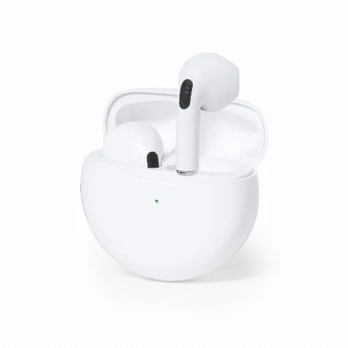 Ergonomically designed, including touch control button integrated in the earpiece, with matching charging base. Built-in 200 mAh battery and presented in an individual kraft design box. Instruction manual in English and Spanish.