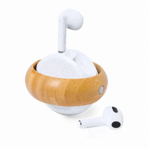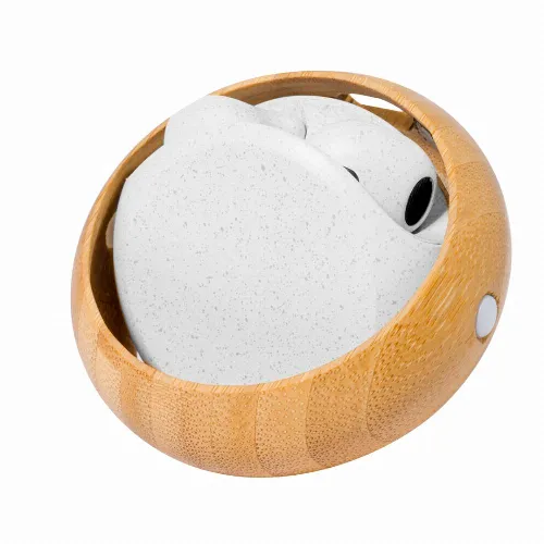 Ergonomically designed, with integrated touch control button on the earpiece, matching 300mAh charging base and LED charging status light. Hands-free and rechargeable, with Type C cable included. Packed in an original twist-open case, with a bamboo and wheat straw charging base and round bamboo frame. Presented in an attractive kraft design box.Materials such as bamboo encourage the use of natural raw materials, reducing pollutant emissions. It comes from a highly resistant and versatile plant with rapid growth and regeneration, making of it an excellent alternative to traditional wood.The capacities shown in all our external auxiliary batteries are real, all of them incorporating non-recycled, grade A batteries, with a service life of at least 500 charging cycles, and complying with CE regulations. In addition, they are manufactured according RoHS standards, and in compliance with the following safety requirements: Power bank overcharge protection system. Complete discharge protection system, which increases the durability of the power bank. Blocking system to prevent short circuits. Constant charging transfer system, in accordance with the capacity of the target device.