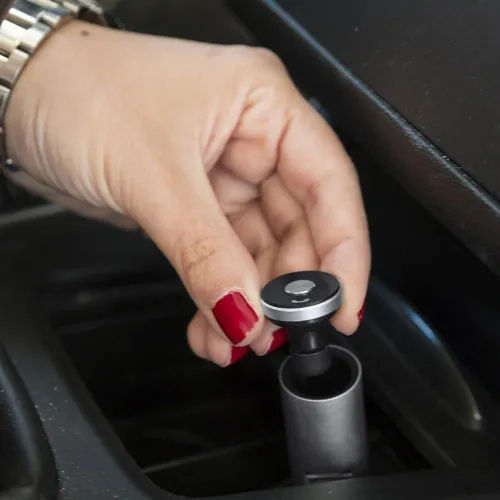 Aluminum USB charger for car lighter.