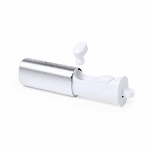Earphones with Bluetooth® connectivity. Ergonomic and minimalist design, in an elegant combination of white and silver colors. Aluminum case, with integrated charging base, led light charging indicators and carry ring. Hands free function, rechargeable via USB cable -included- and presented in an attractive, individual design box.