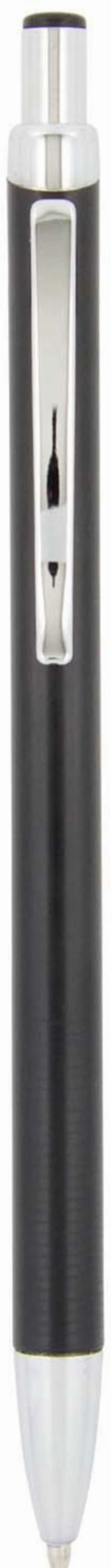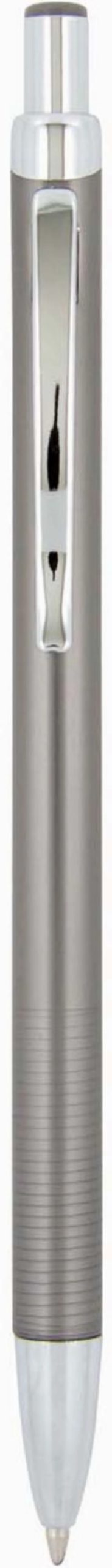 A slimline push button aluminium pen with a matt finish and chrome metal trim and clip. Parker style black refill.