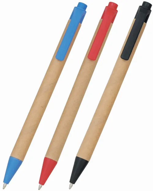 Push action pen with a recycled cardboard barrel, coloured clip and tip. Parker style black refill.