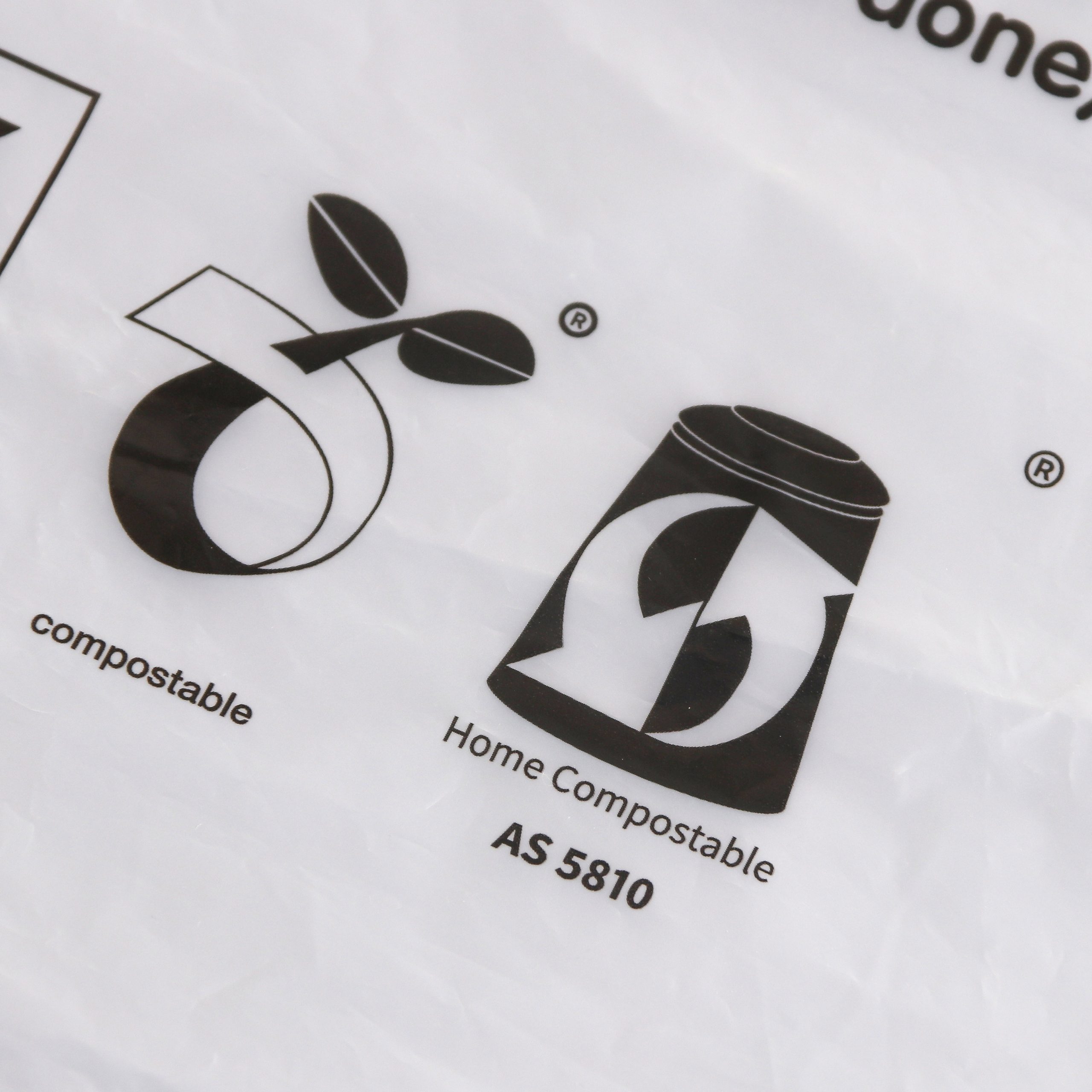 - Made of PLA and PBAT, this bag is home-compostable and bio-degradable