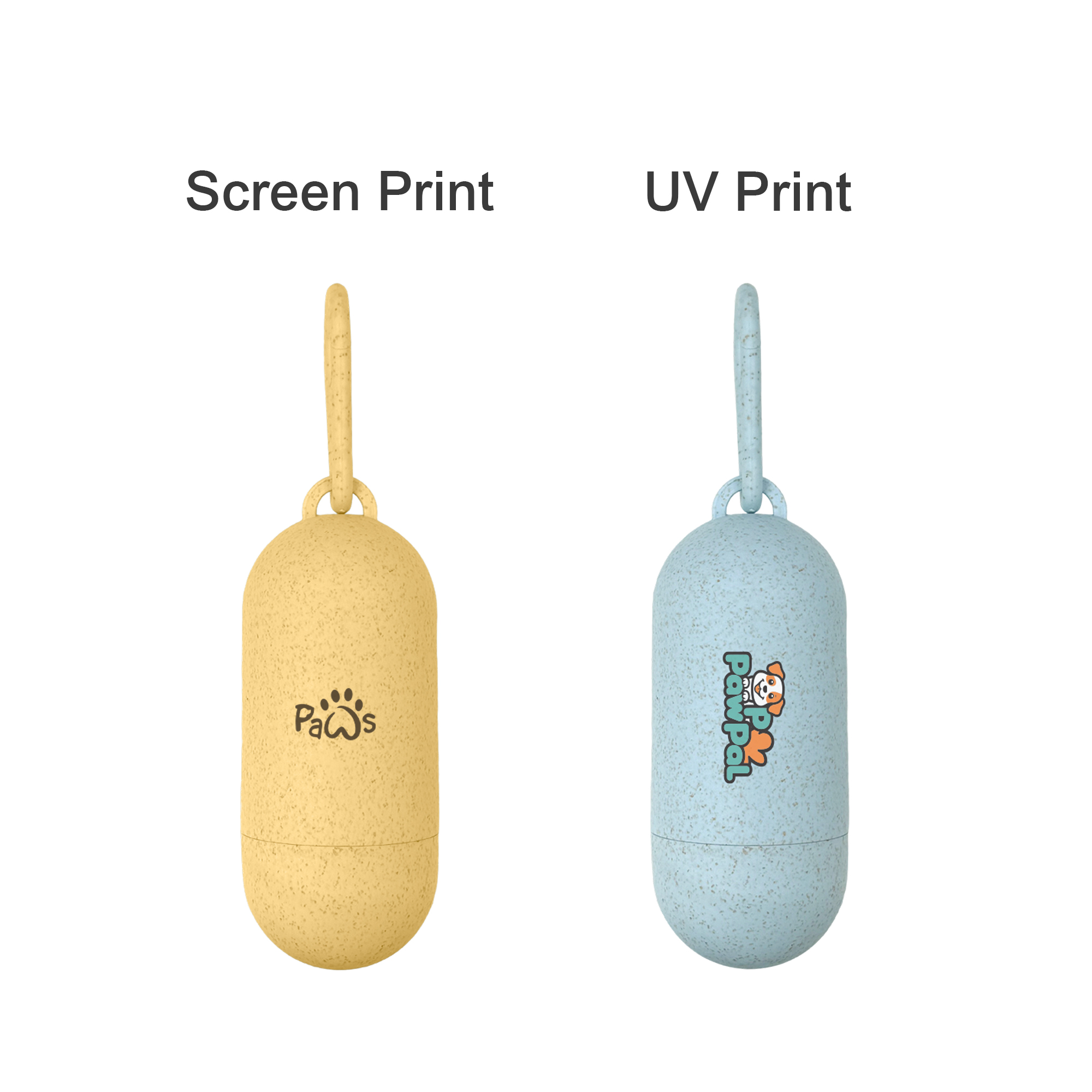 Keep every outing with your pup tidy, hassle-free, and eco-friendly with our Eco Pill Shape Pet Wastebag Dispenser! Made from a tough wheat straw and PP combination, it’s durable and kind to our environment. With slim pill design, it’s simple and cute. Attached with the included D-ring, it fastens conveniently to your bag strap, pet leash, or backpack. Choose from 6 stylish colours to match your vibe. Customize it with screen print or digital UV print. Great for daily walks, parks and weekends. Perfect for every pet parent’s outdoor use!