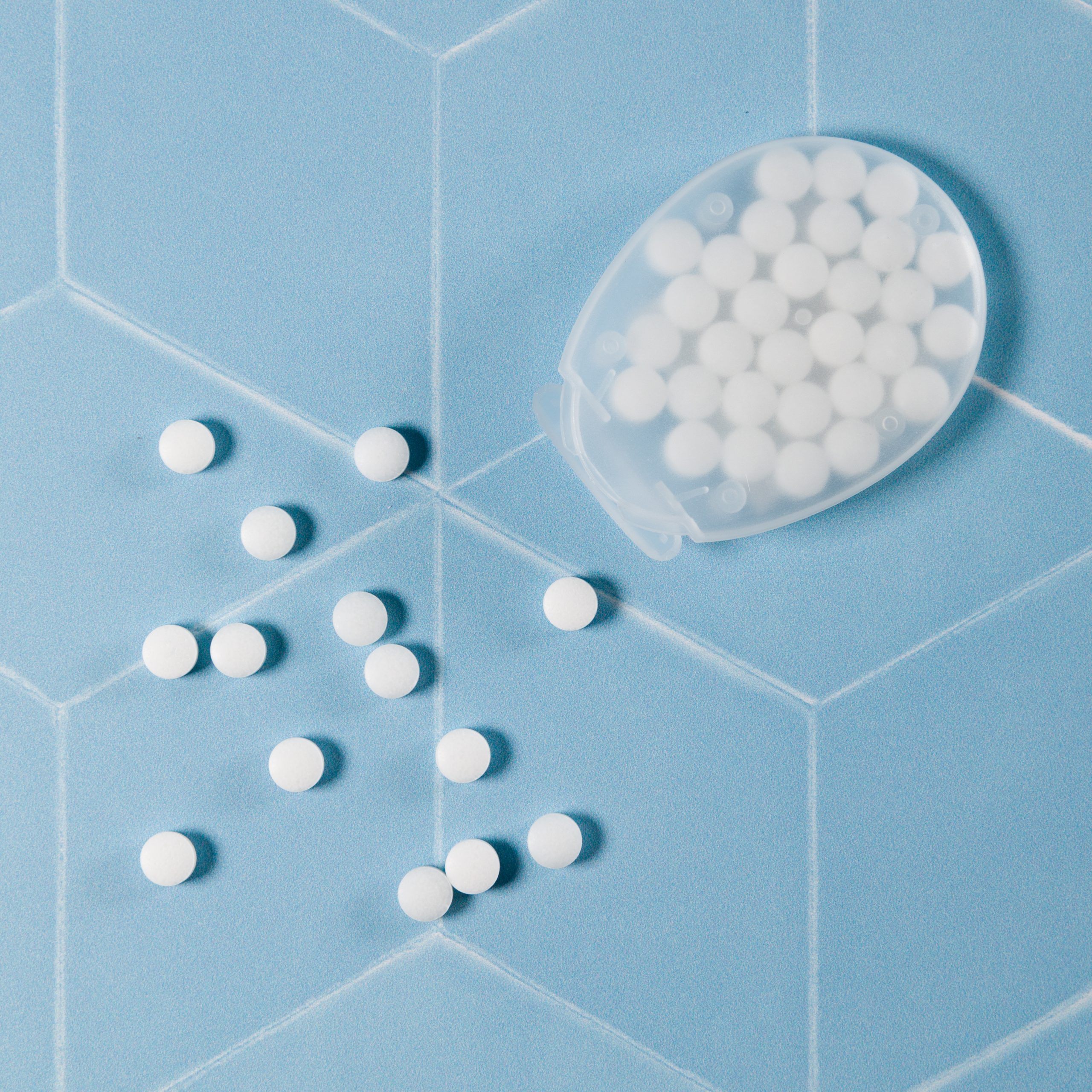 Oval mint dispenser with snap lock opening. Contains approximately 30 sugar free mints. Finished weight 14 grams.