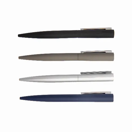 Metal ballpoint pen with rubber finish and gunmetal clip, engraves with a mirror finish on lower barrel. Black ink.