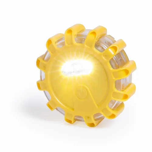 Equipped with 3 LED lights, with fixed lighting position (two levels of intensity) and flashing light. With swivel carabiner and available in bright colours. Powered by button cell battery (included) and presented individually in a kraft design box.