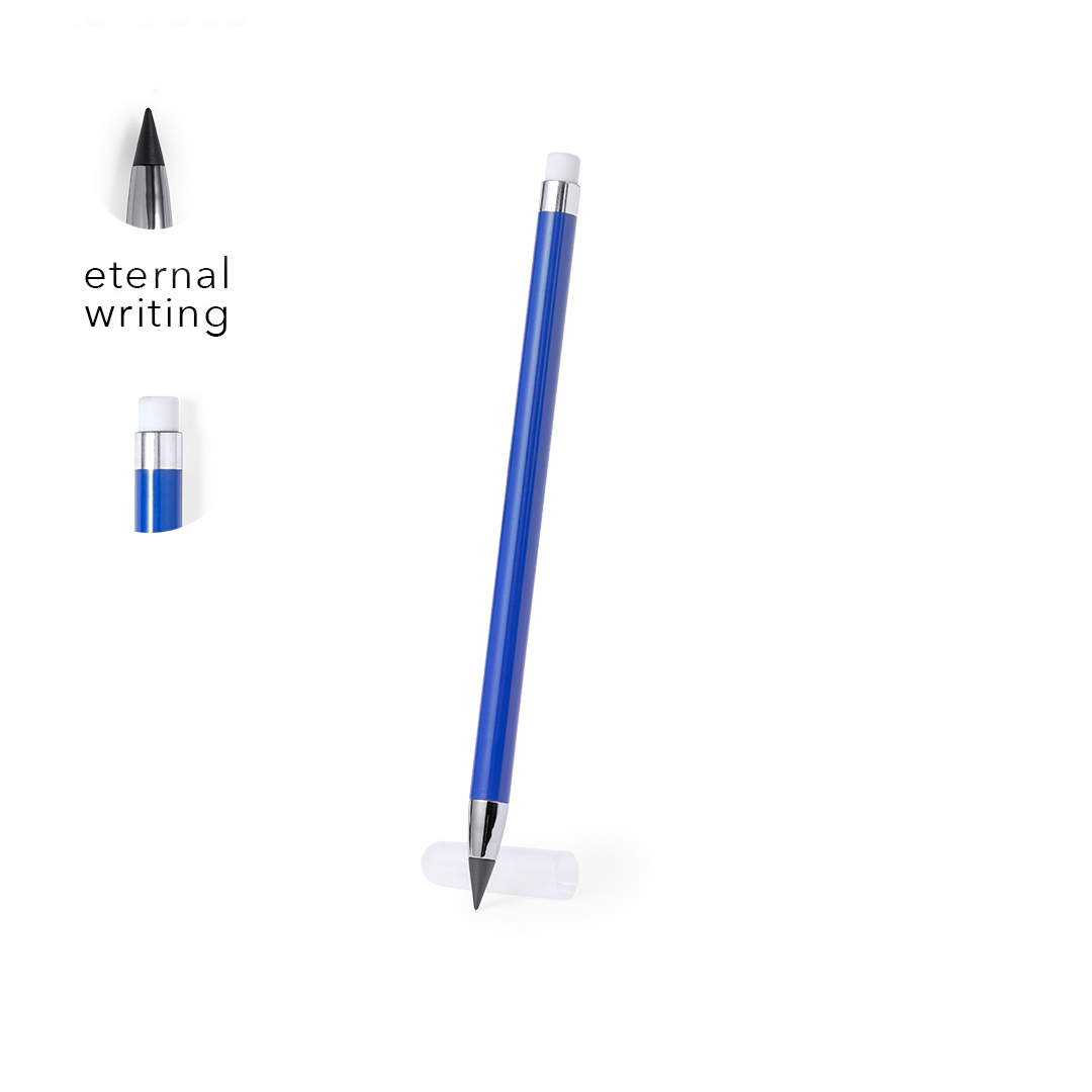 Reusable and with infinite writing, to always use the same pencil and not generate waste. Including eraser on top of the pencil, and a cap to protect the tip. Elegant style, combining coloured elements with silver elements. Available in a wide range of colours.