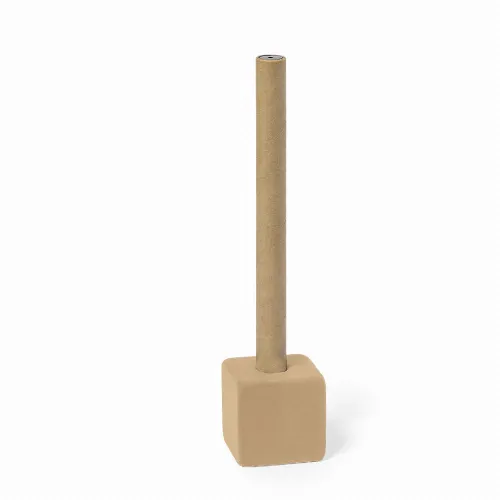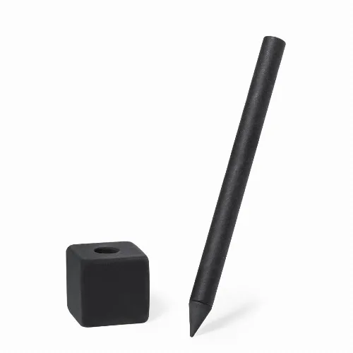 Practical instrument for infinite writing thanks to its non-wearing tip. With practical eraser in the shape of a cube. Set designed in natural and black colour and presented in an individual kraft box.