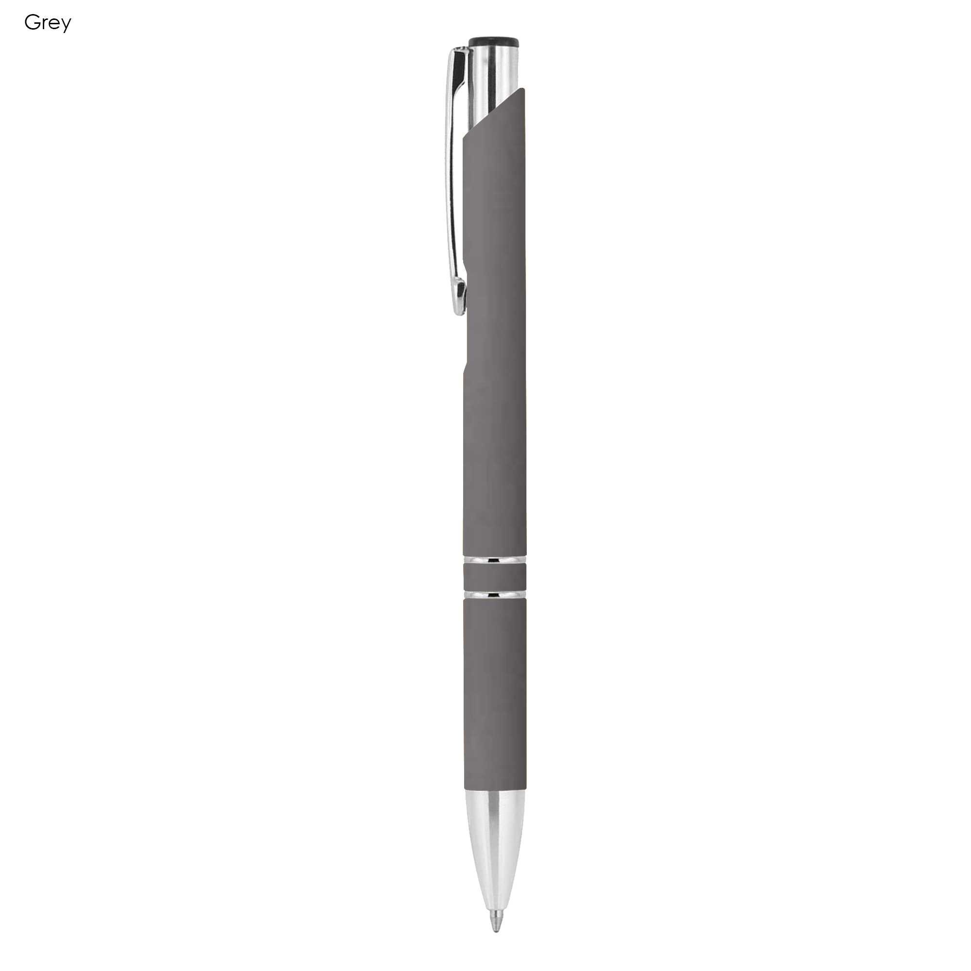 Popular aluminium stylish design pen with shiny silver fittings and soft-touch rubberized barrel click action with plastic Parker-Type German manufactured black ink refill 1200 meters writing distance tungsten carbide ball provides you with quality writing.