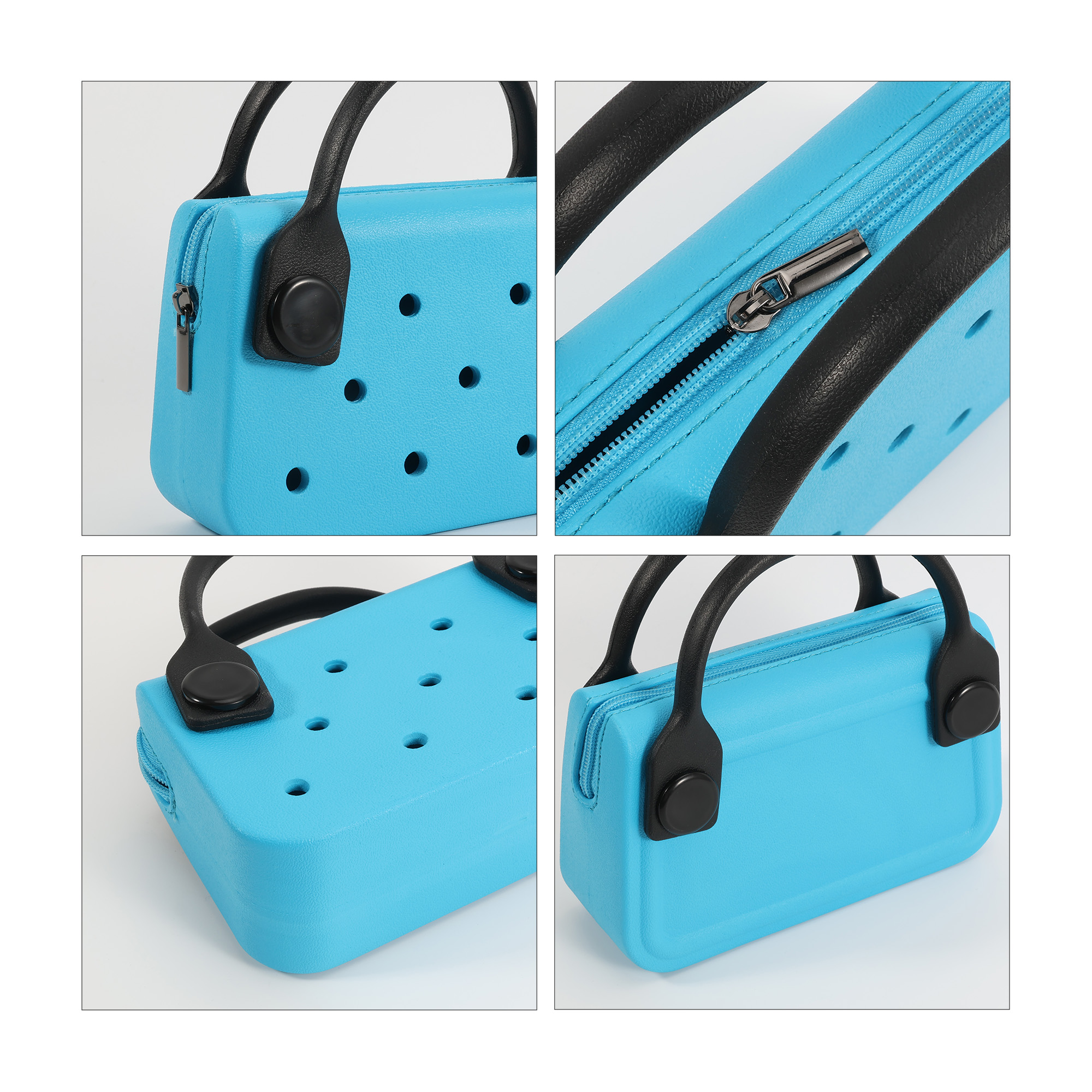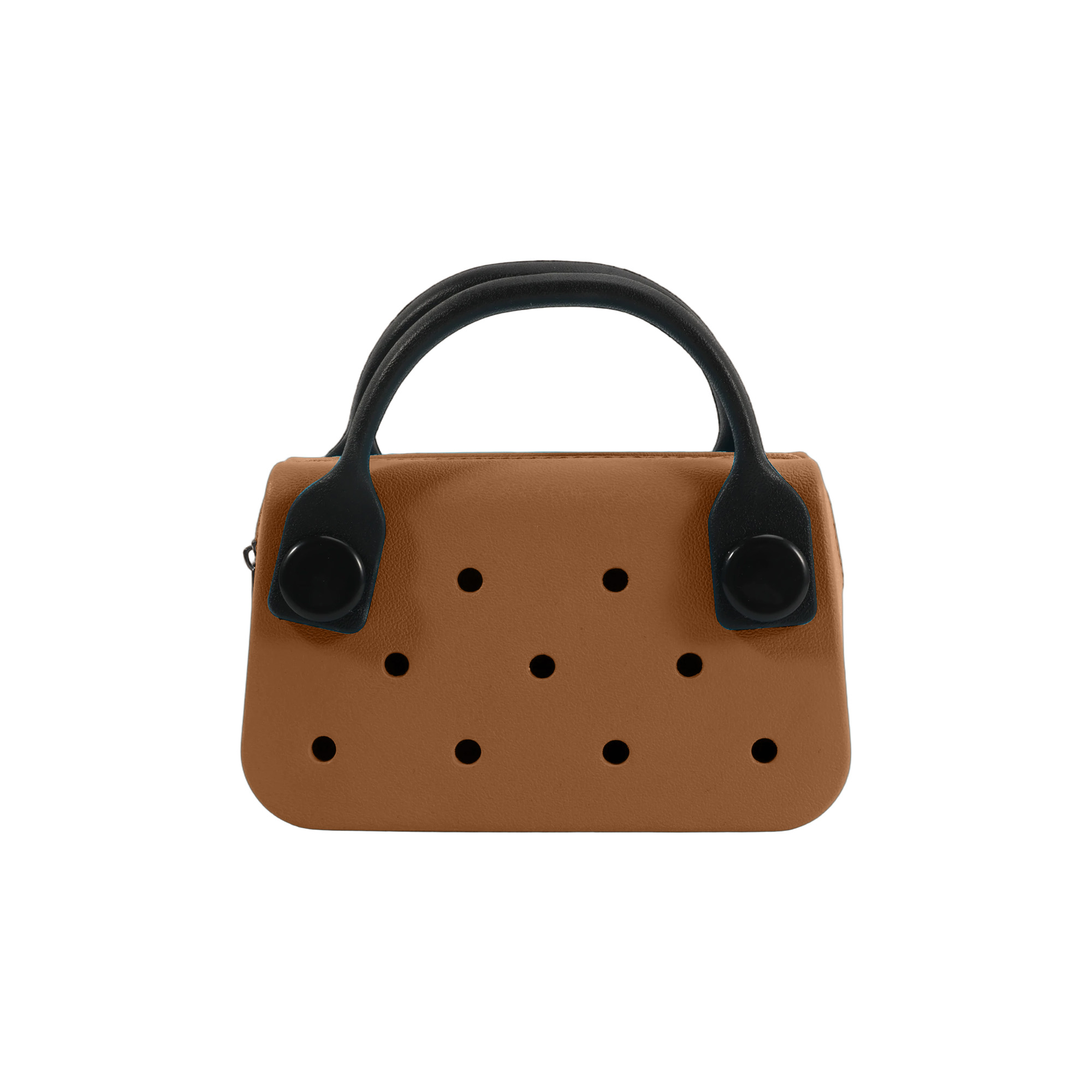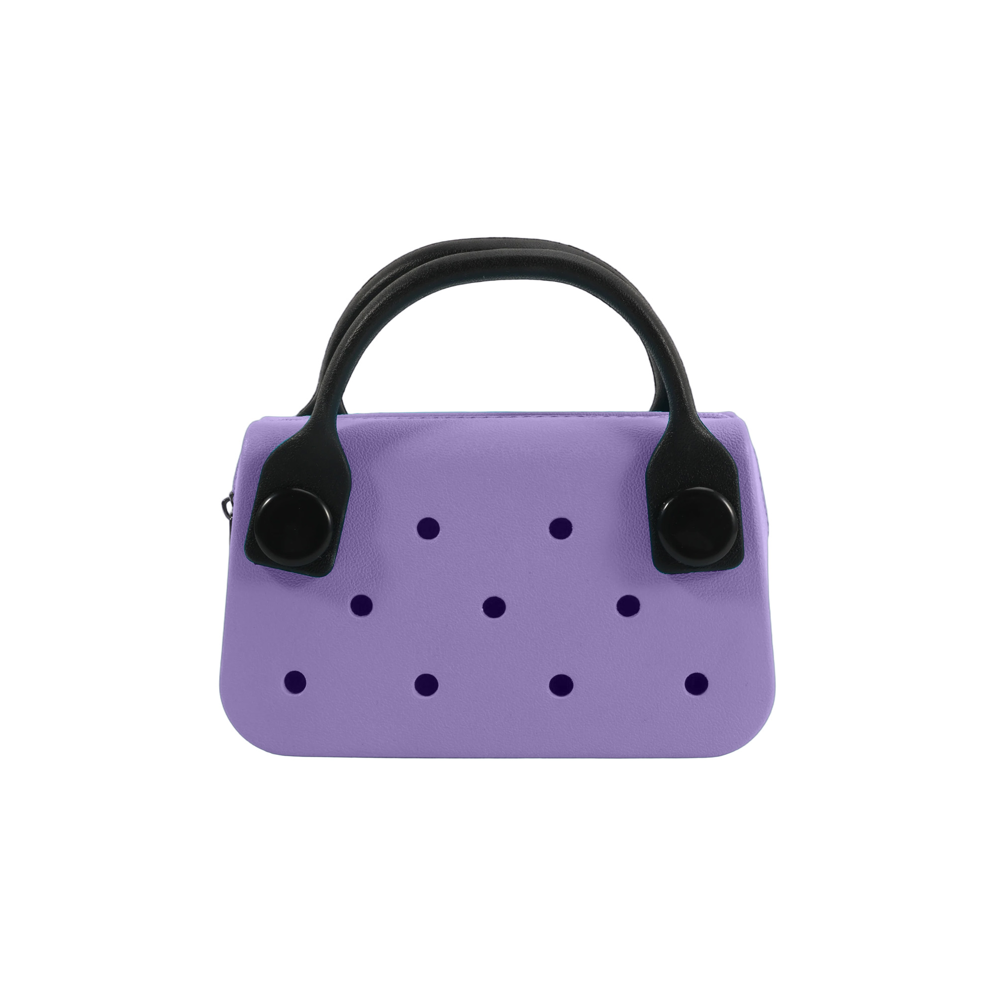 Carry your items in style with our EVA Holes Mini Handbag, featuring a compact size for easy carrying. Crafted from lightweight and waterproof EVA material, our bag is available in 6 colours to match your style. Personalise the bag through digital UV printing to showcase your logos or brand messages. Additional customisations include custom shape charms and a custom backing card. Ideal for outings, promotional events, or fashion accessories, our bag presents your brand through practical carrying solutions.