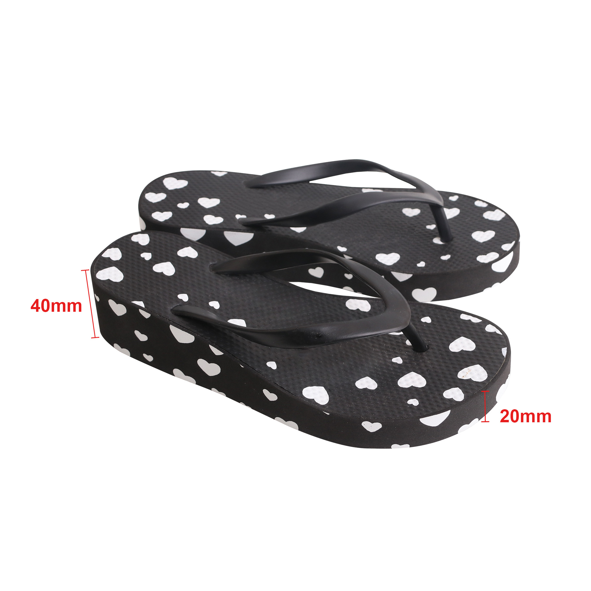 Men's Size:<br/>S :250 mm (L) <br/>M :270 mm (L) <br/>L :290 mm (L) <br/>XL:310 mm (L) <br/><br/>Women's Size:<br/>S :230 mm (L) <br/>M :250 mm (L) <br/>L :260 mm (L) <br/>XL:290 mm (L) <br/><br/>Kid's Size:<br/>S :175 mm (L) <br/>M :195 mm (L) <br/>L :210 mm (L) <br/>XL:230 mm (L) <br/><br/>Thickness: 20mm (Front), 40mm (Behind)<br/>