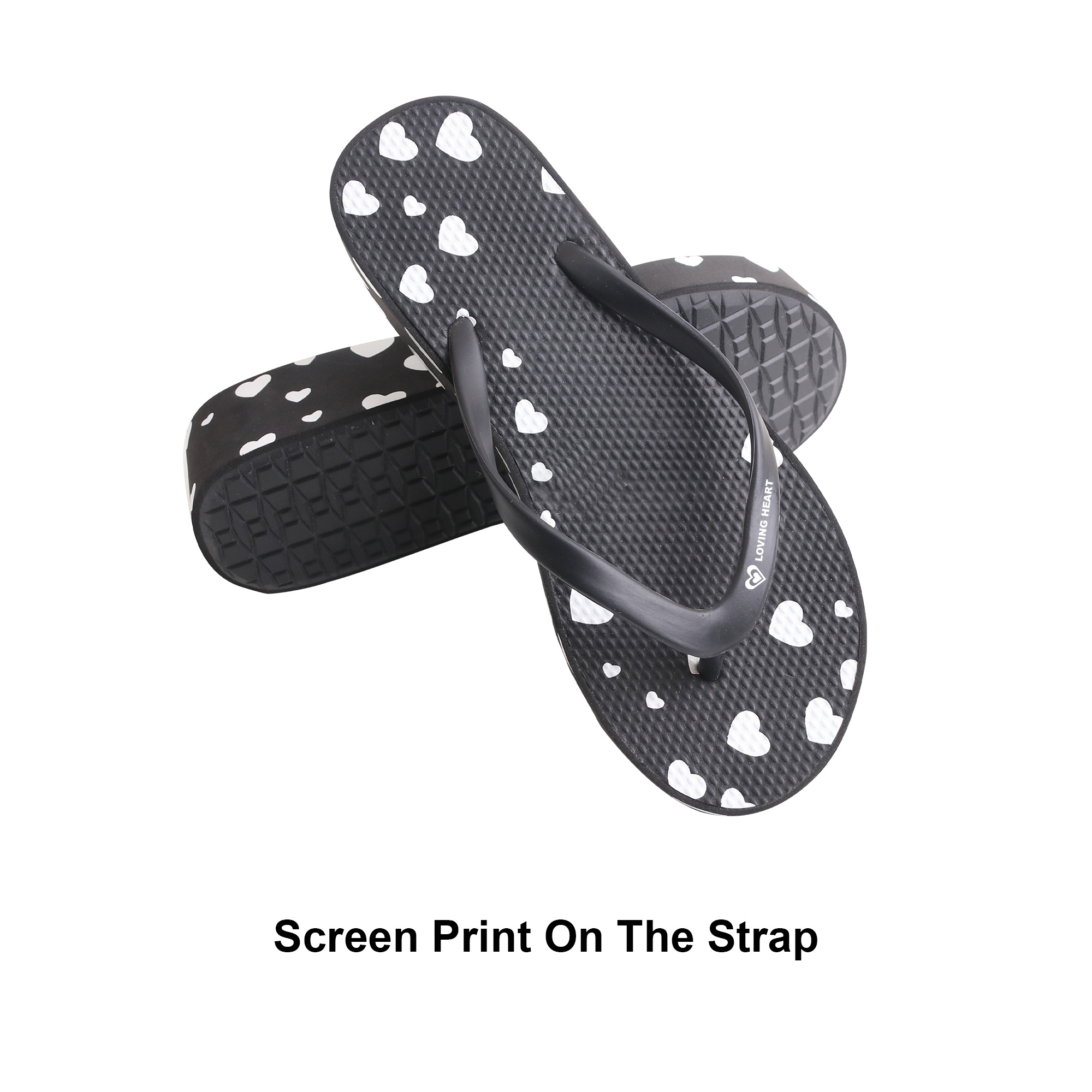 Screen print / UV print on the sole <br>Screen print on the side<br/> Screen print on the strap