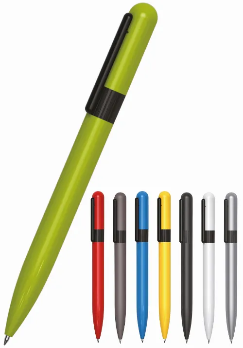 A sleek metal twist action ball pen with lacquered bodyand black clip and trim.