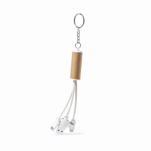 With USB, Type C and dual micro USB-Lightning connections. Including ring/key ring for portability and a flat area for branding. Presented in an individual bag with kraft finish and eco design.