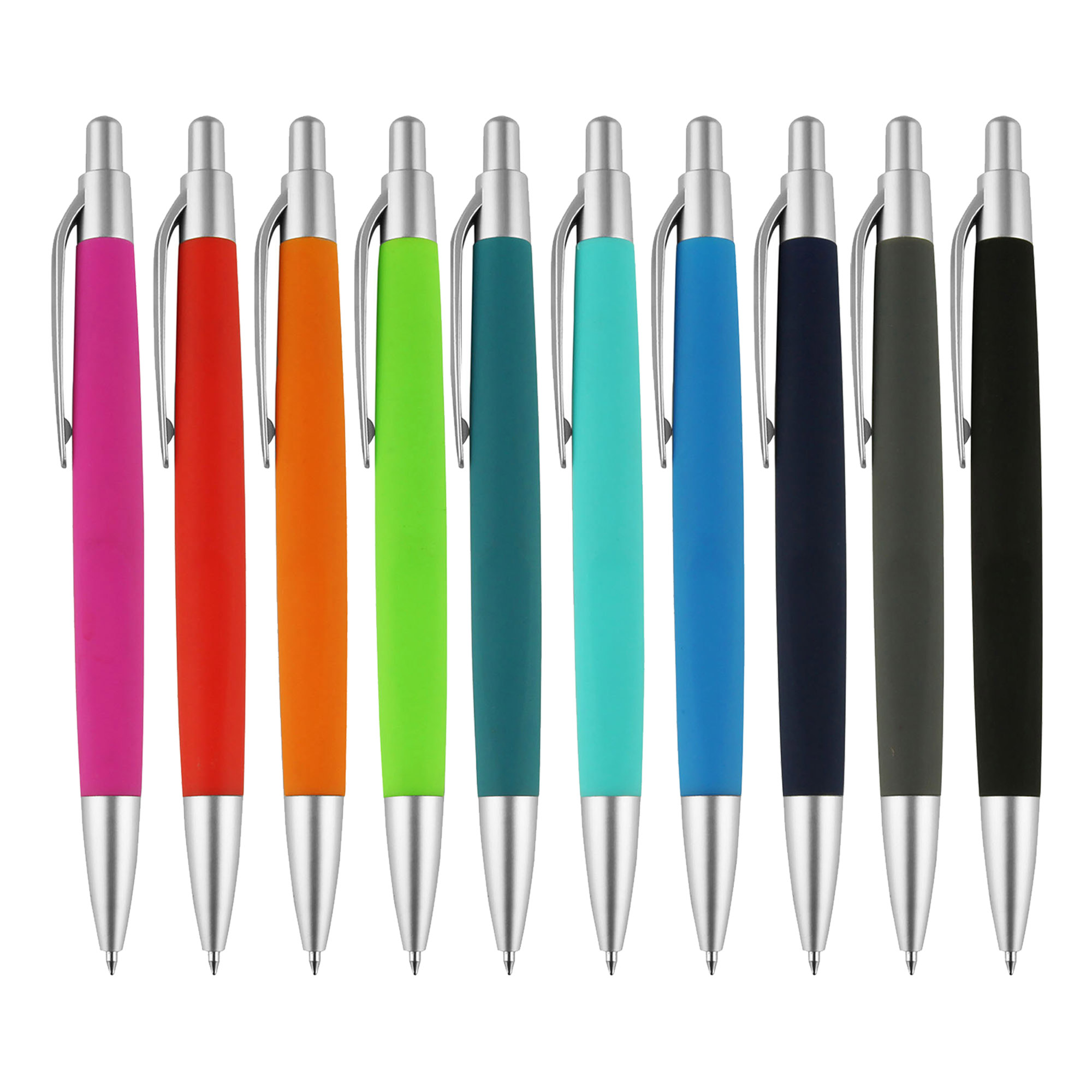 One of the most popular promotional pens with soft-touch rubberized barrel and satin chrome accents it brings a beautiful contrast to the vibrant barrel colour. The large colour selection offers a great choice for your corporate colours. Click action high quality cross-type refill with German manufactured black ink and tungsten carbide ball which brings you the better writing quality 1200 meters writing distance.