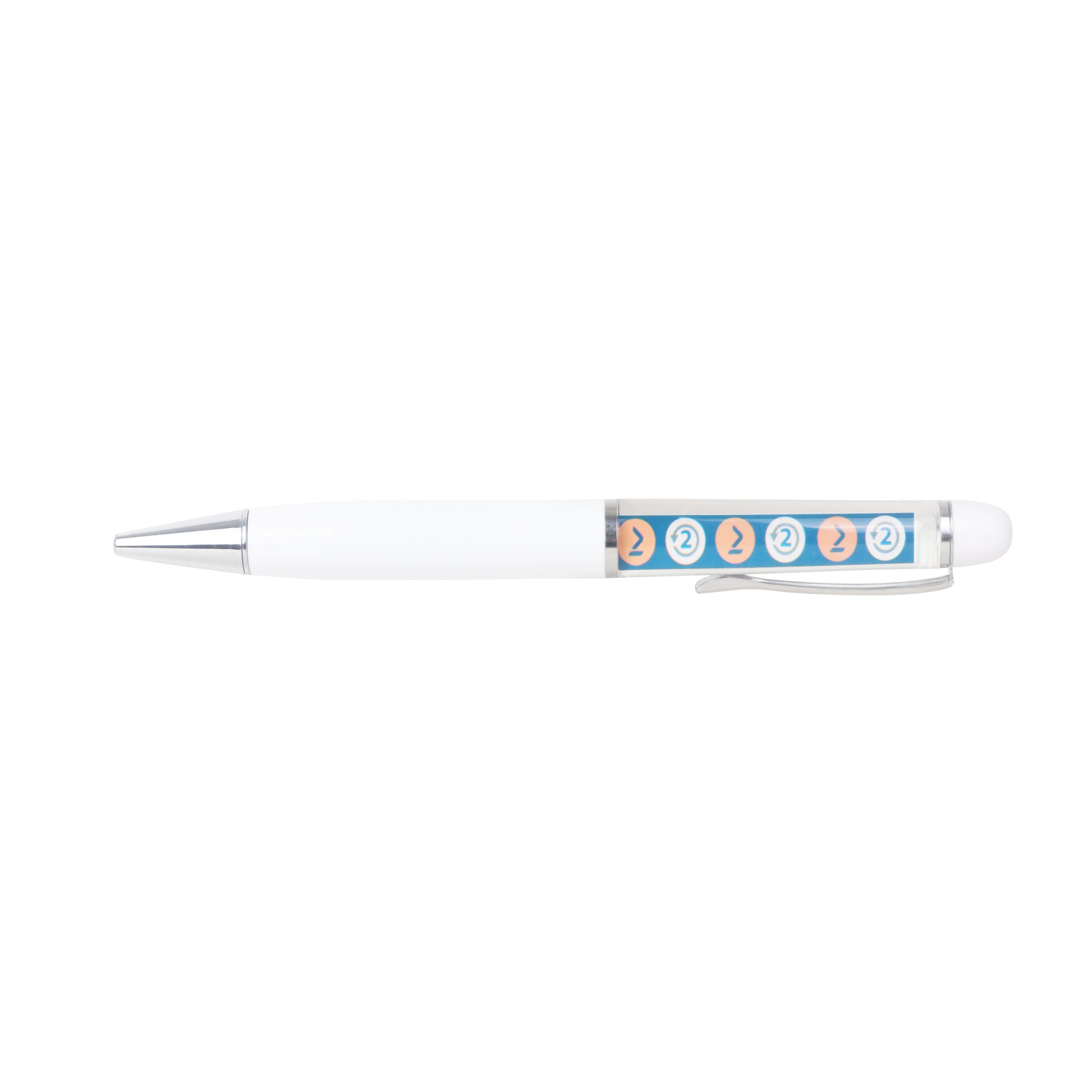[short_description] => Twist action plastic pen with white barrel and styled clip.
