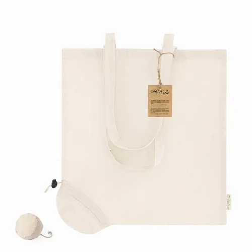natural, organic cotton in 120 g/m2. 70cm length, reinforced handles with stitched finishing. Organic distinctive in side label and resistance up to 9kg of weight. Small size folding for easy carrying.
