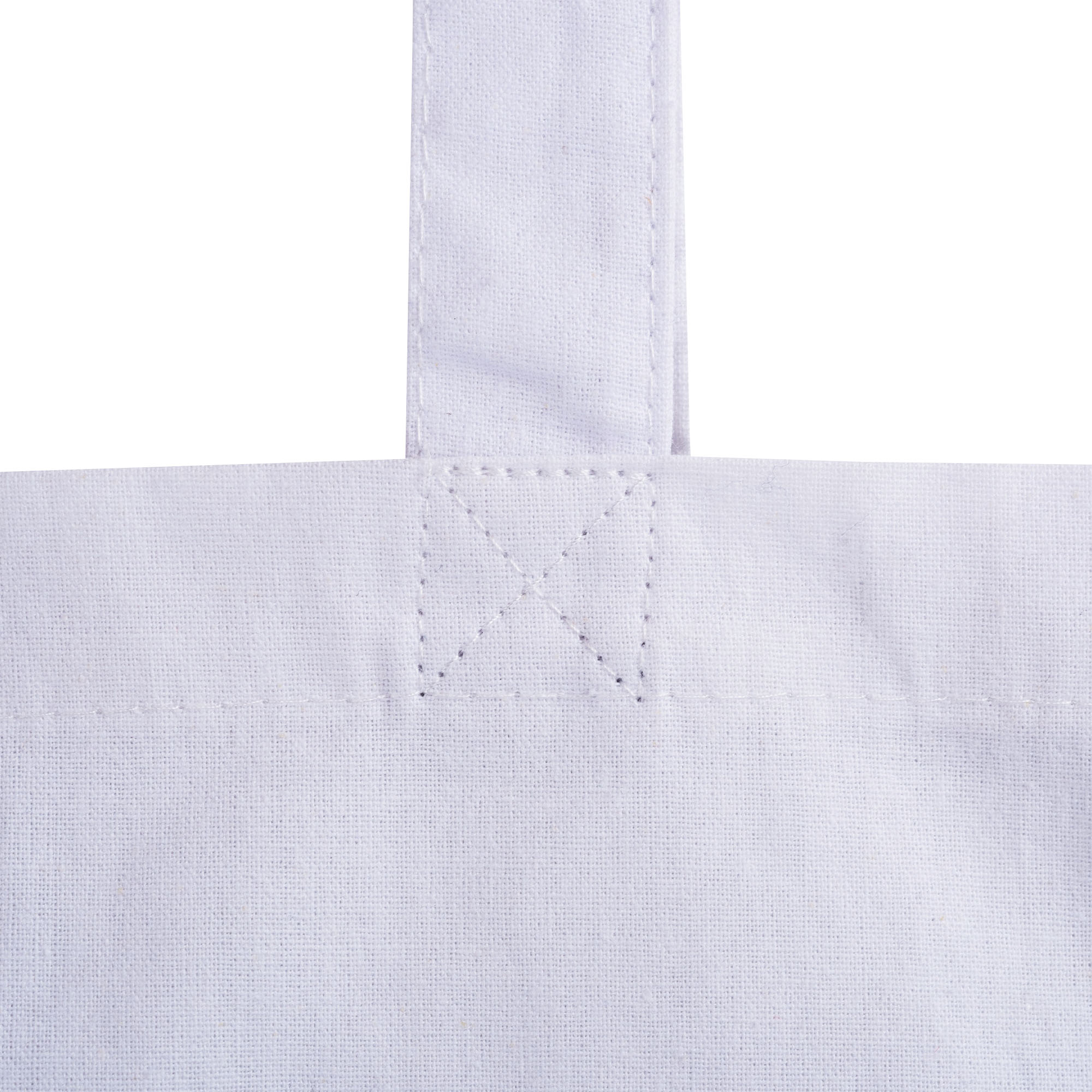 Environmental friendly calico bag with long handles so it can be carried on shoulder it is made of 170gsm cotton and can be folded and zipped into a small wallet size.