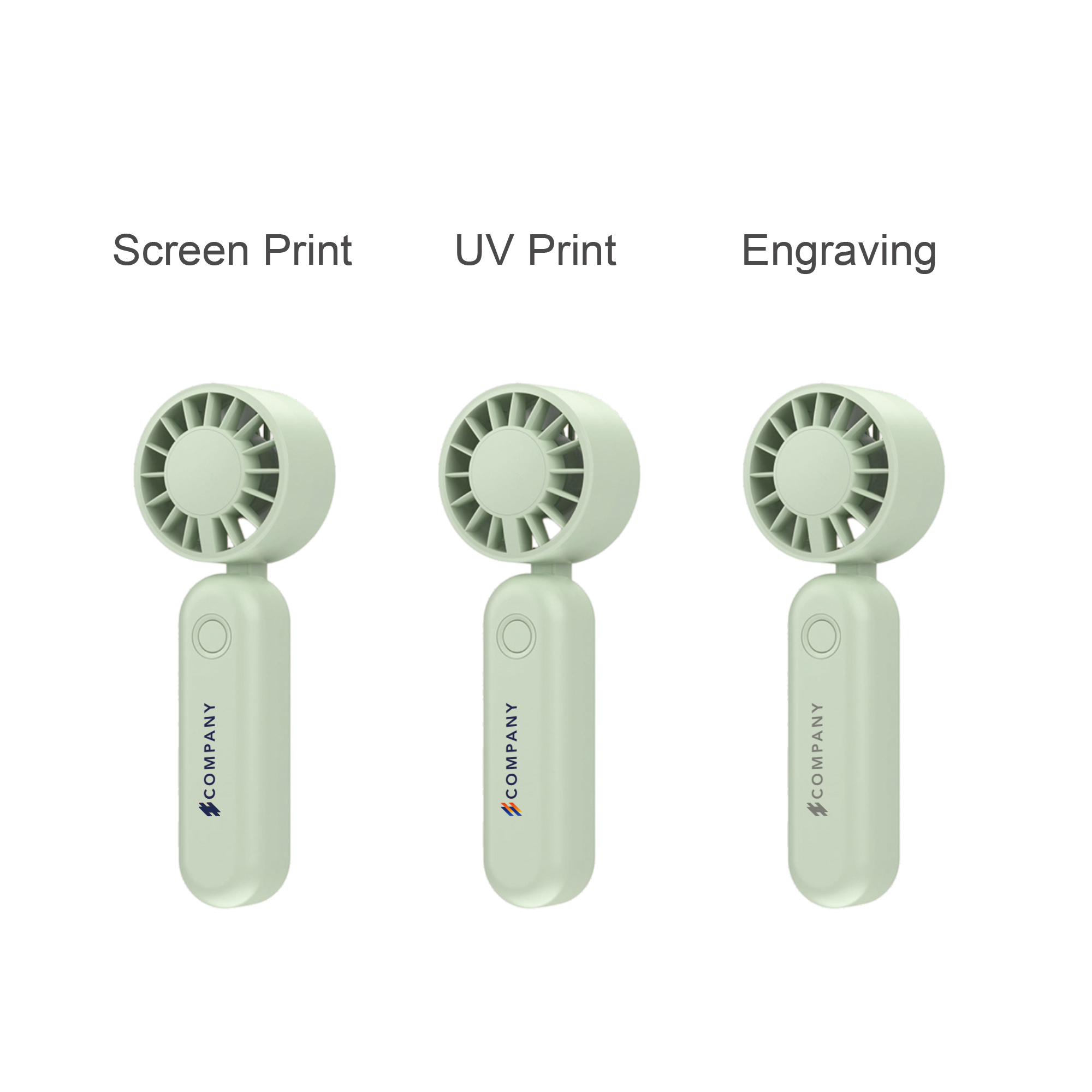 Beat the heat effortlessly with our Foldable Handheld Fan!Made of high-quality ABS plastic, it’s scratch-resistant, impact-proof. It can be folded up and placed on the table, you can enjoy hands-free cooling anytime. Battery capacity is 1200 mAh. The max use time is about 4 hours. Choose from 4 stylish colours to match your design. Customize it with screen print, UV print, or engraving. Each package includes a box, user manual and USB cable. Perfect for commutes, travel and hot office days. Stay comfortable and cool anytime, anywhere!