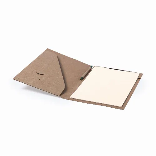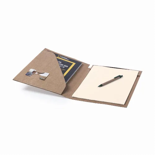 Resistant, rigidly finished recycled cardboard folder with matching color recycled cardboard ball pen included.