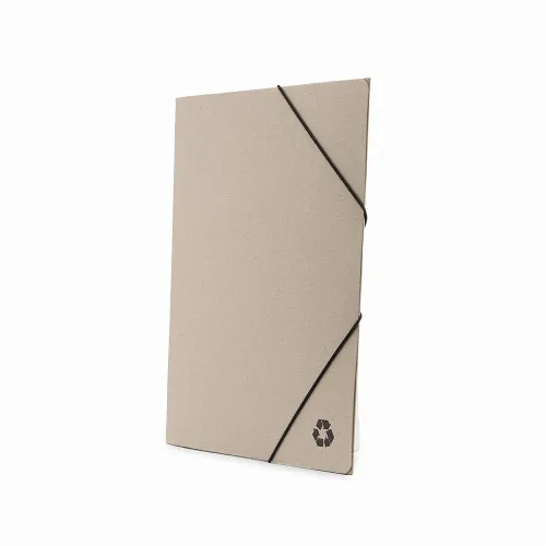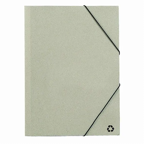 High-capacity ecological folder with elastic closure in flexible recycled cardboard and with tripe folding system..