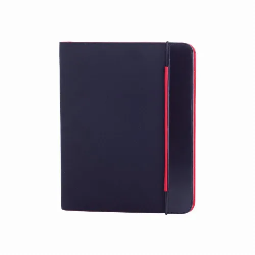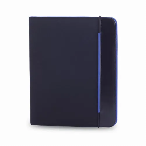 Bicolored design folder in bright tones, in soft microfibre with elastic band closure.