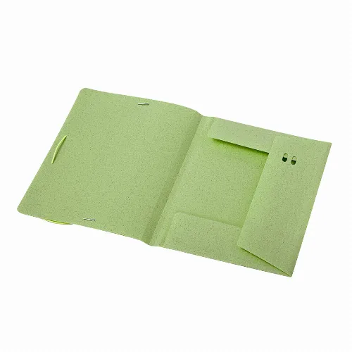 Flexible cover, with special inner compartment to hold sheets of paper and elastic band closure. Available in several colours.Wheat straw promotes the use of natural raw materials, thus reducing pollutant emissions.