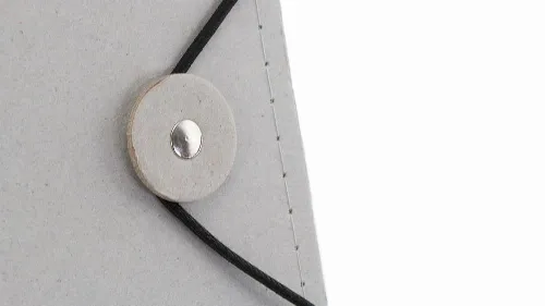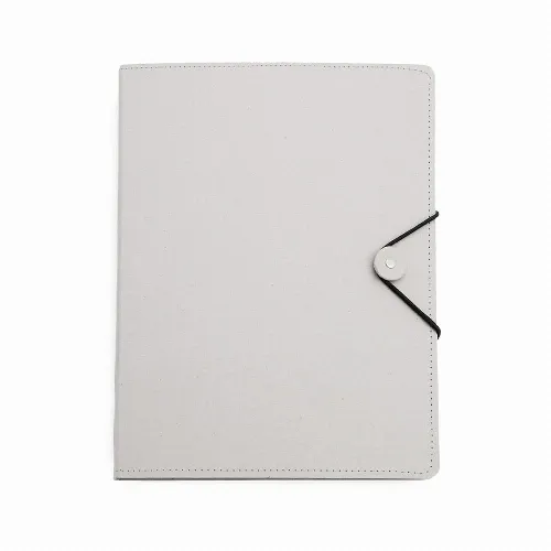 Folder with original elastic band closure, made of resistant recycled cardboard with reinforcement seams.