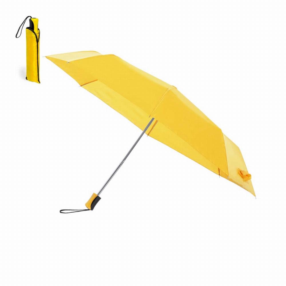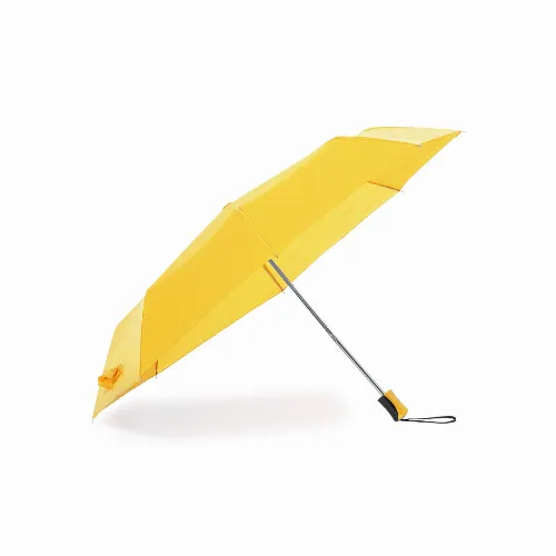 Manual opening, with silver coloured metal ribs and velcro fastening. Ergonomic handle with carrying strap and matching protective sleeve. Available in a wide range of colours. Presented in an individual recycled bag.