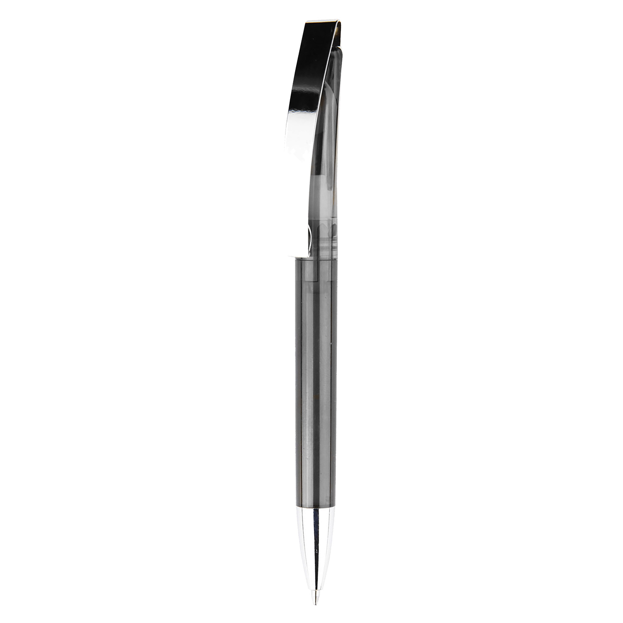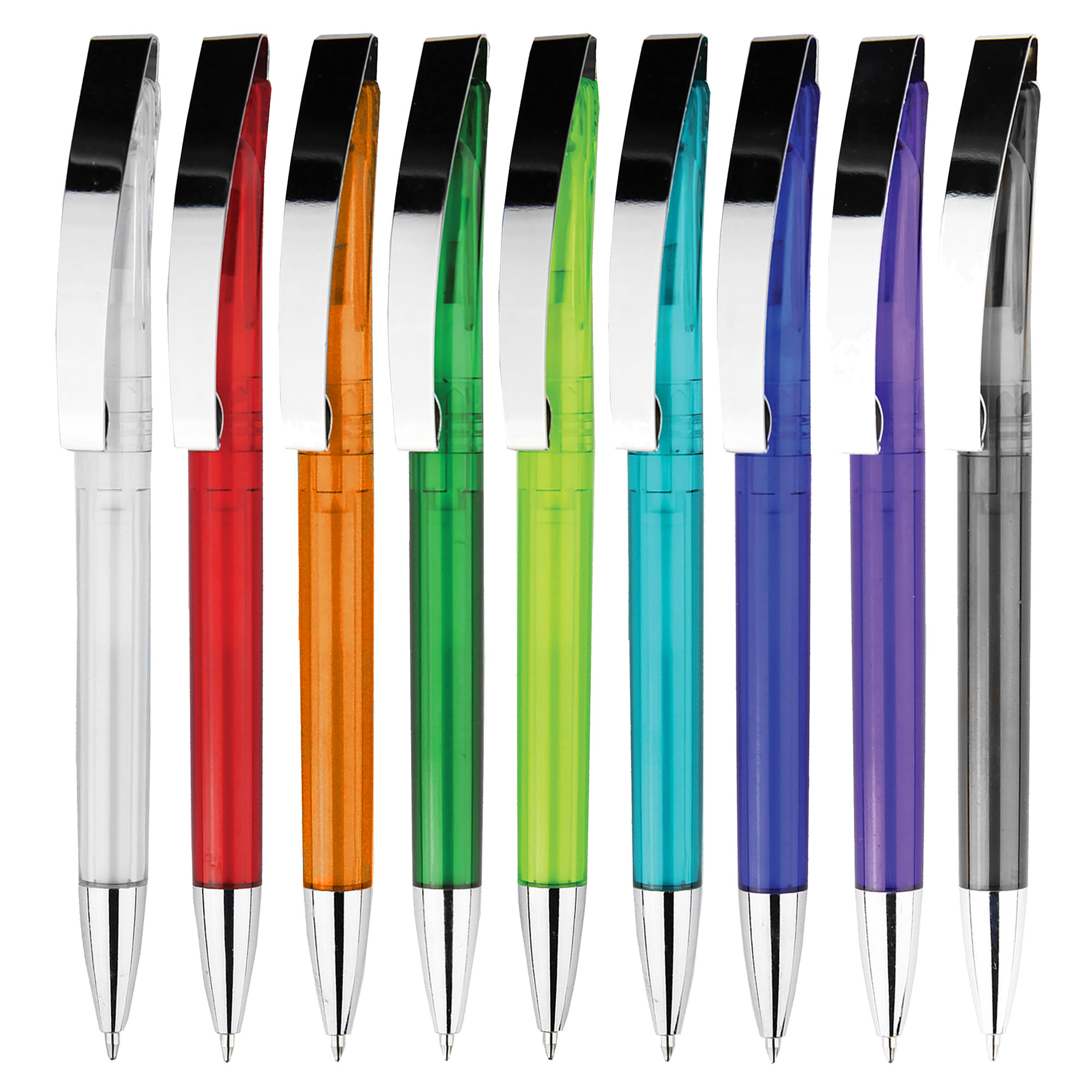 Twist action high quality ABS transparent plastic pen shiny chrome metal clip with bright transparent barrel the stylish design will surely brighten your logo a large printing area on the clip give you a great option of laser engraving on a plastic pen. It has high quality German manufactured black ink refill 1800 meters writing distance tungsten carbide ball provides you with quality writing. Comes standard with black ink but blue ink is available on request. Exclusive to Dex Collection in Australia and New Zealand.