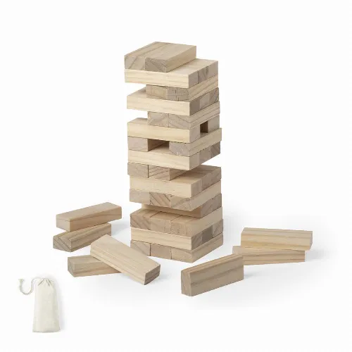 Including 45 wooden pieces and comes presented in a durable cotton pouch with string closure.
