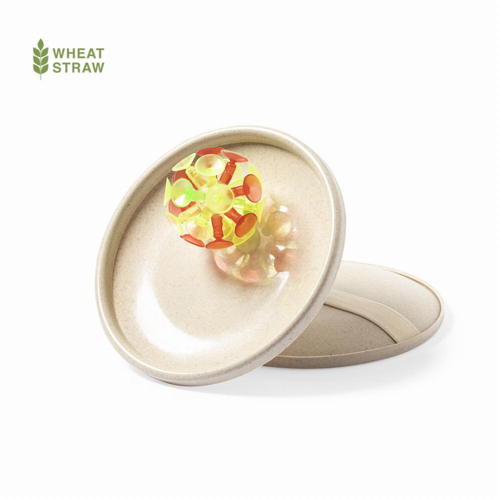 Including ball with suction cups and flat disc paddles, made of resistant wheat straw, with matching elastic strap for the hand. Wheat straw promotes the use of natural raw materials, reducing pollutant emissions.