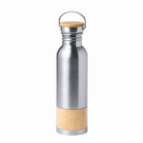 Stainless steel body with bamboo band, stainless steel screw lid and bamboo detail. Presented in an individual box of eco design in kraft cardboard.