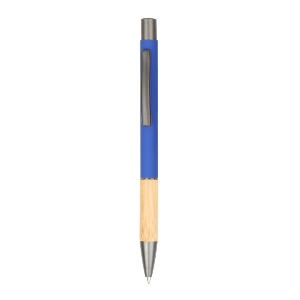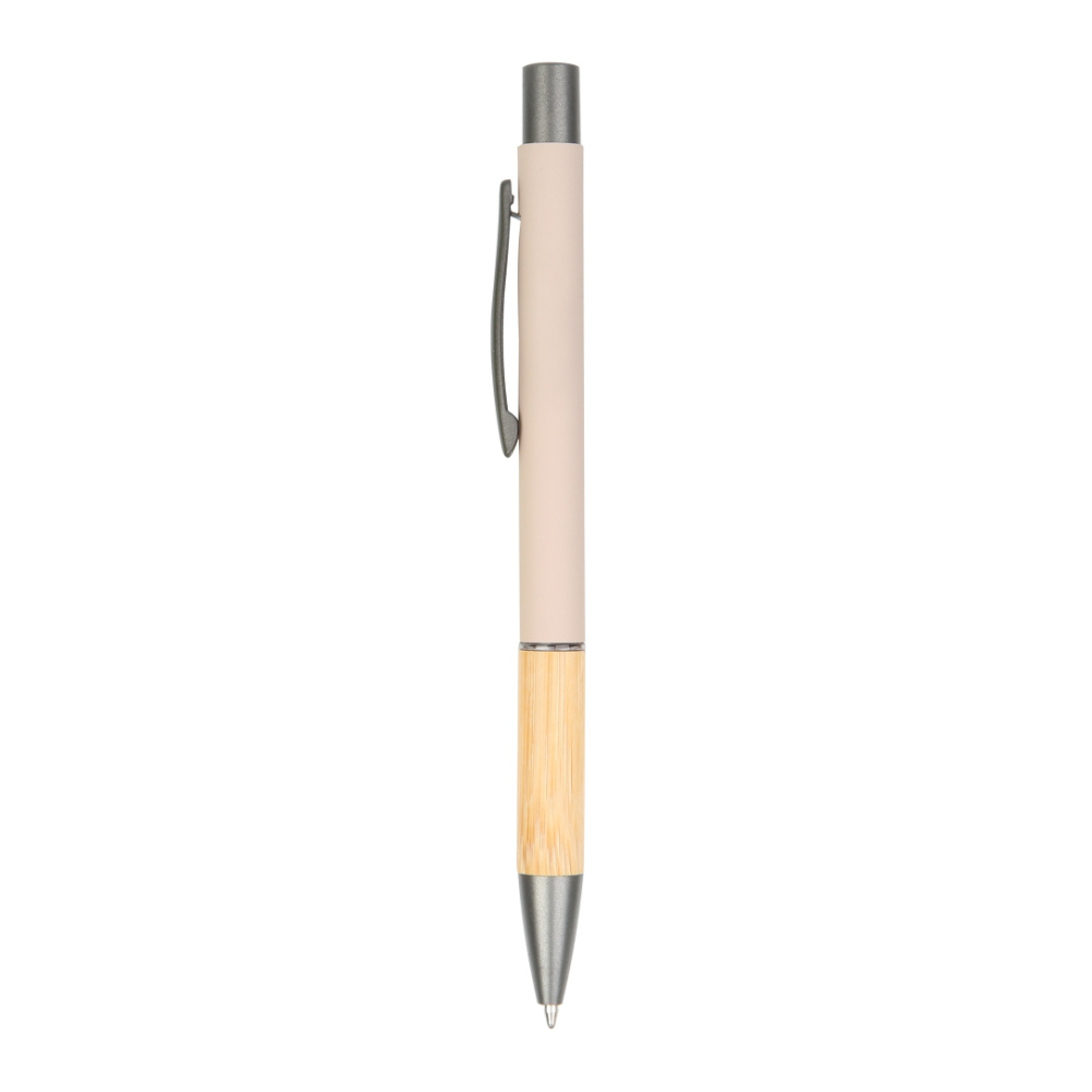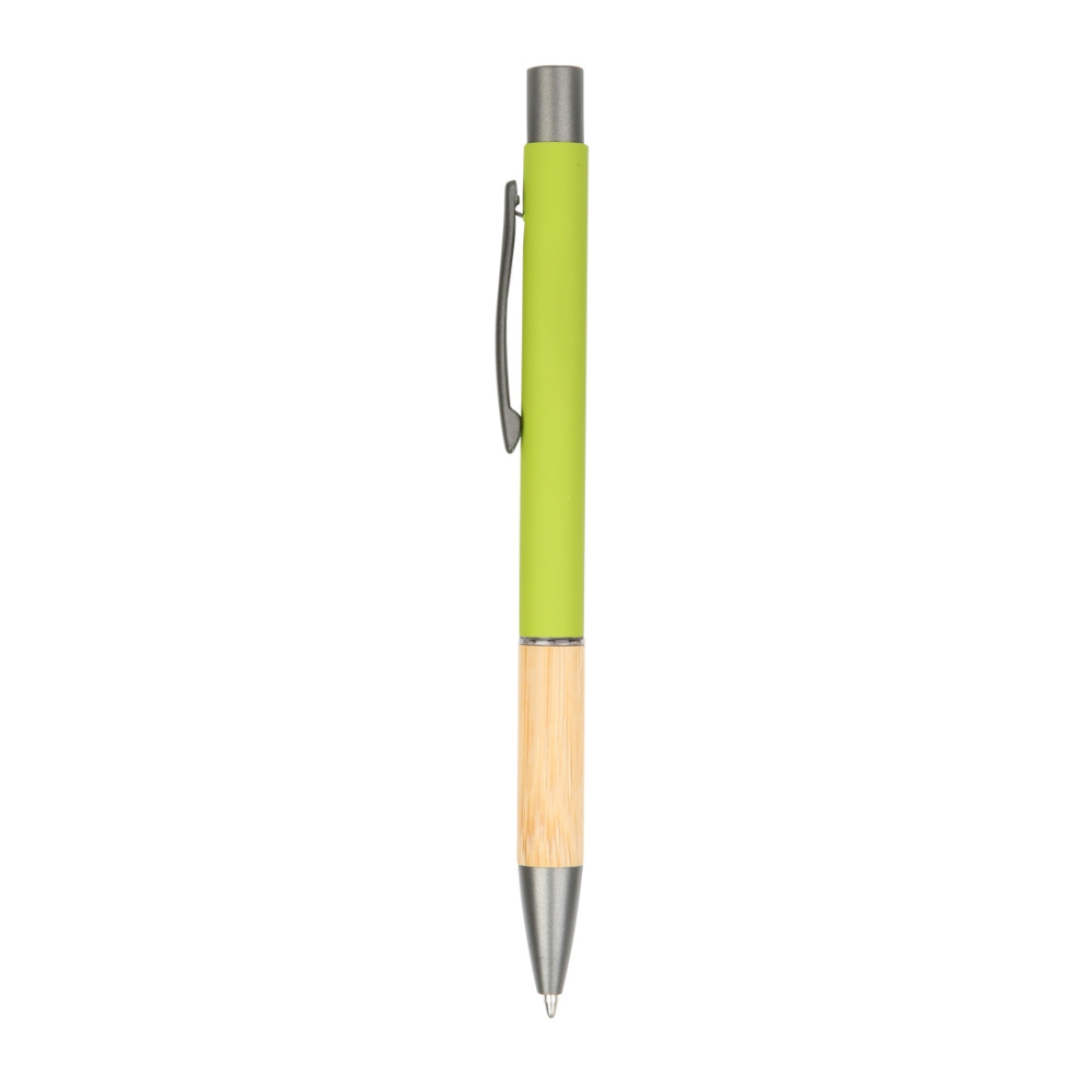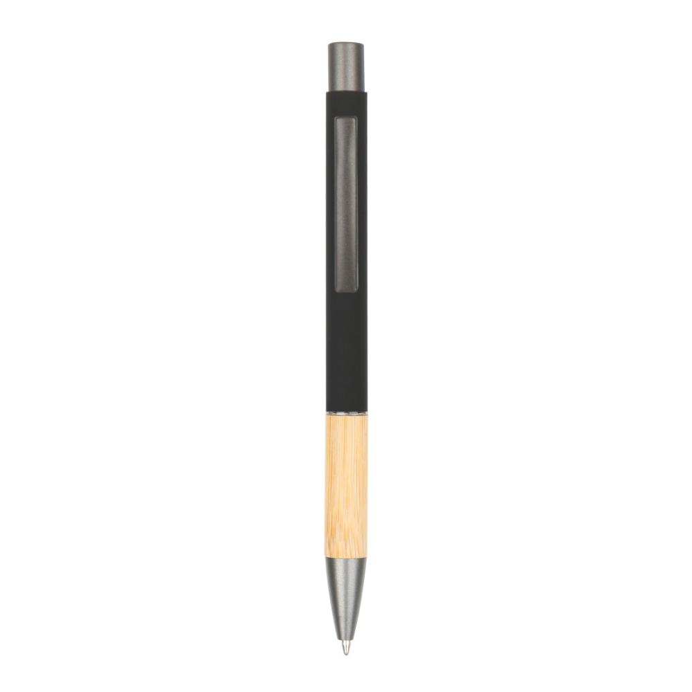 Click action aluminum pen, Rubberized coloured barrel, Bamboo grip, Gunmetal sprayed clip, tip and trims. 1.0mm Black ink slim refill, German Dokumental Black Ink, T.C. Nib.