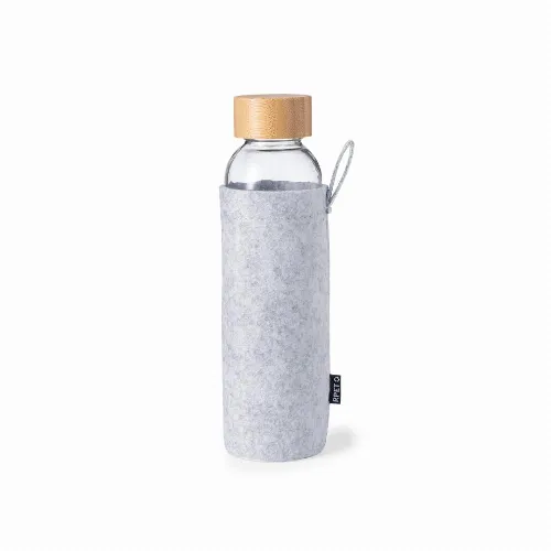 Made of durable glass with bamboo screw cap. Including soft RPET felt pouch with a practical carrying handle. BPA free. With distinctive RPET label. Presented in an individual eco-design box.The recycled RPET felt is the result of the combination of the recycling process of plastic materials together with the millenary technique of felt making, resulting in an eco-trend material that, besides being of recycled origin, also becomes recyclable.