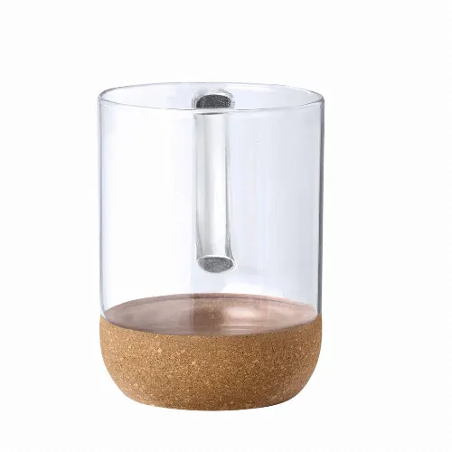 Distinguished design in a combination of glass and cork, in a variety of translucent colours. Presented in an individual box with kraft finish.Made with plant-based elements to promote the use of natural raw materials and reduce polluting emissions.Made of borosilicate glass, which offers exceptional strength and durability, extending lifespan and able to be reused countless times.