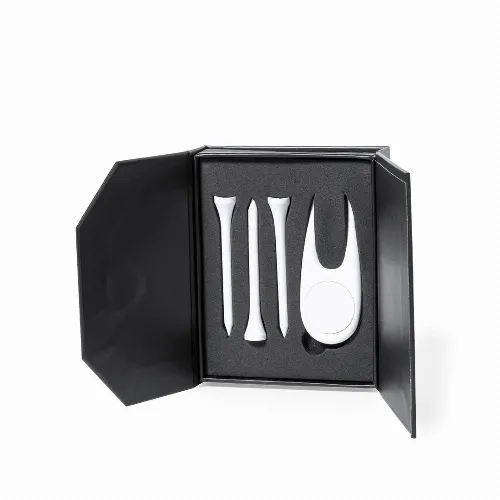 Includes metal divot with special die-cut for doming and 3 wooden tees. Presented in a sober individual case with die-cut inside and magnet closure.