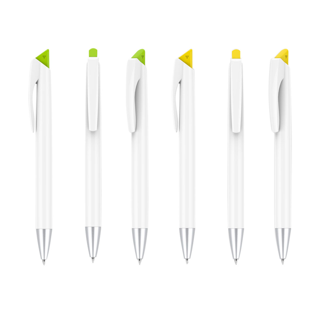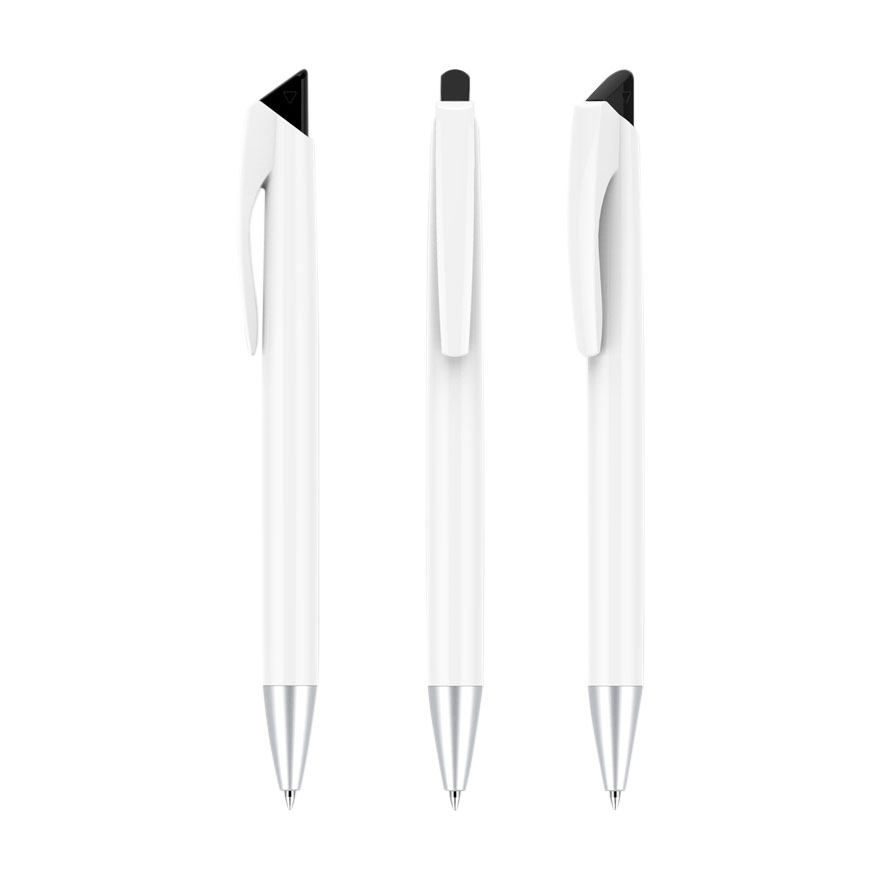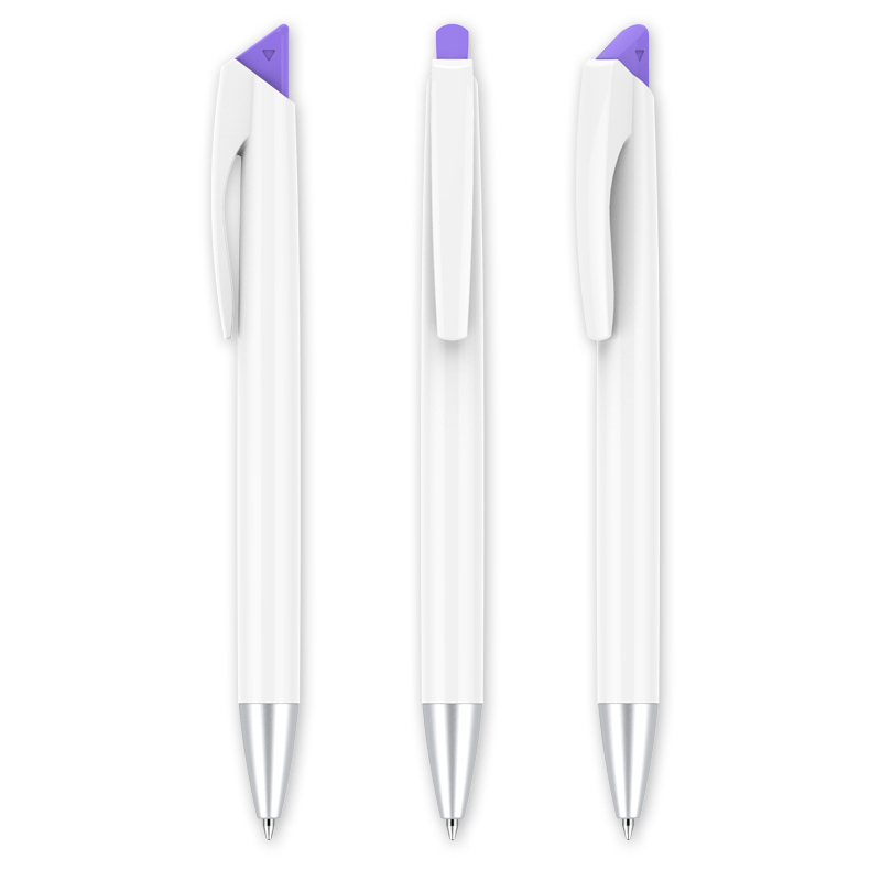 [short_description] => Twist action plastic pen with white barrel and styled clip.