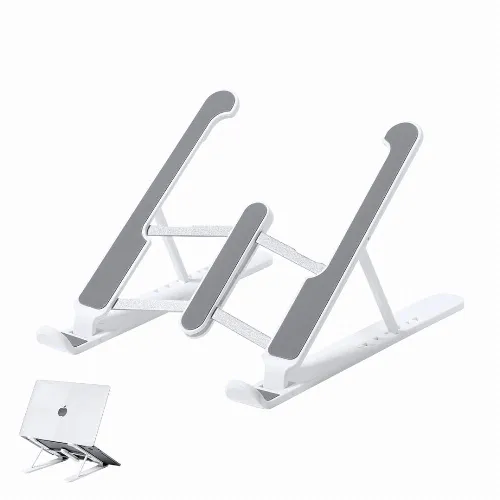 Made in durable ABS with anti-slip TPR protections for a solid fit to the device.Height adjustable, compact folding size and presented in a suede case with drawstring closure and inside an individual design box.