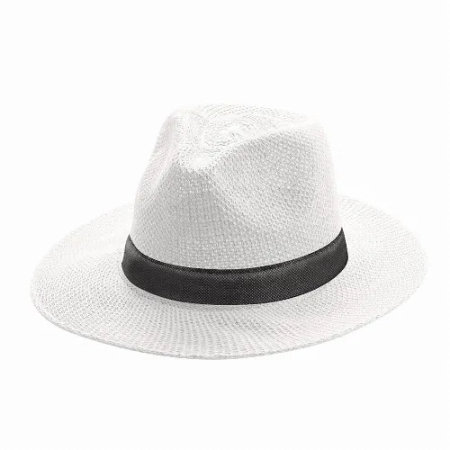 Synthetic hat in sober colors with comfortable matching color inside ribbon..