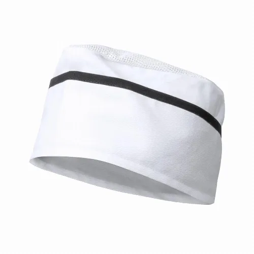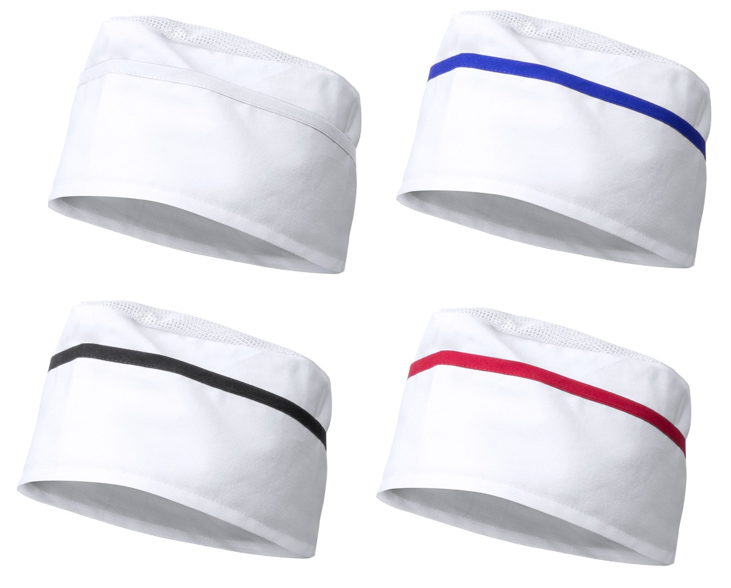 Kitchen hat in comfortable TC material -cotton and polyester combined- in a cheerful combination of white color with accessories in bright tones..