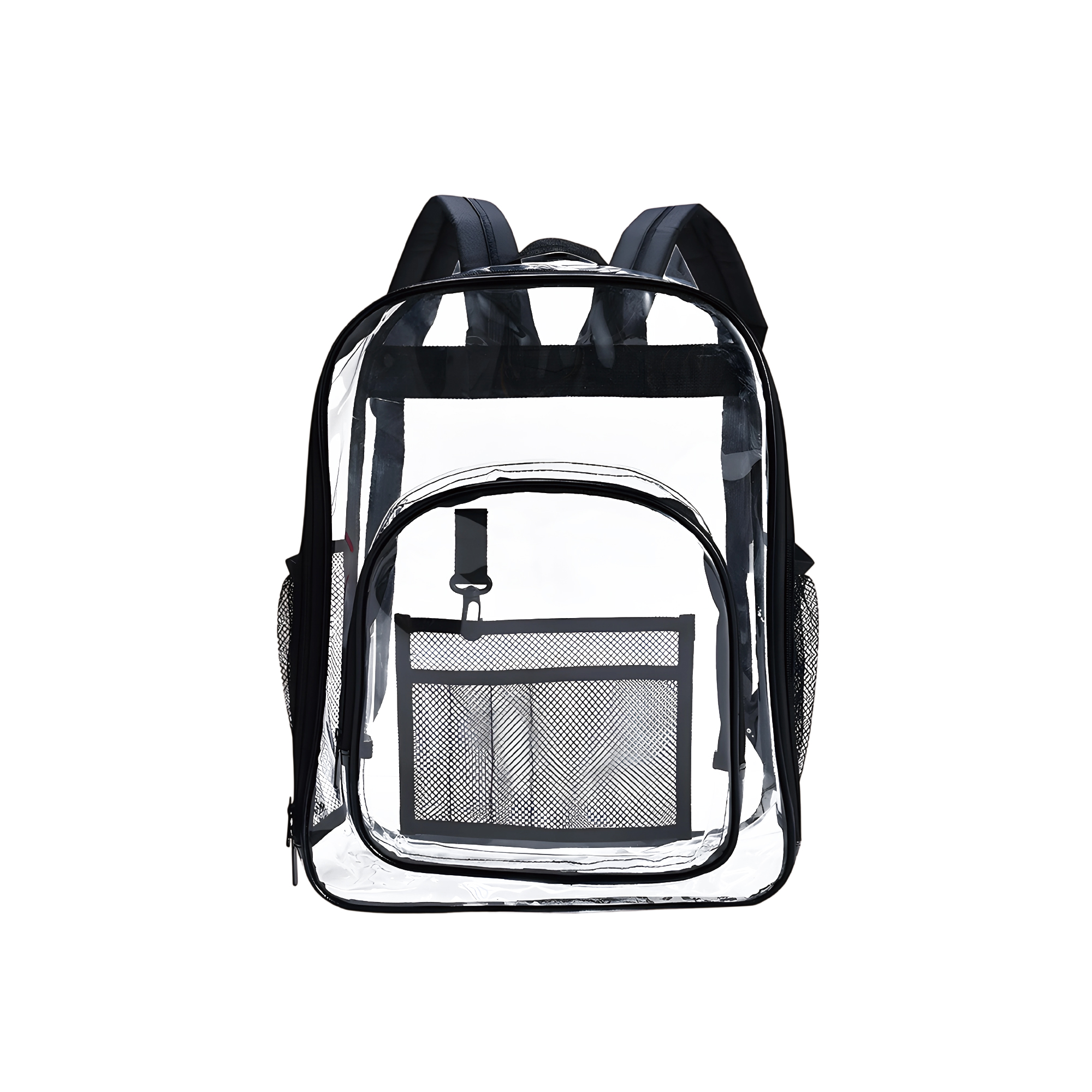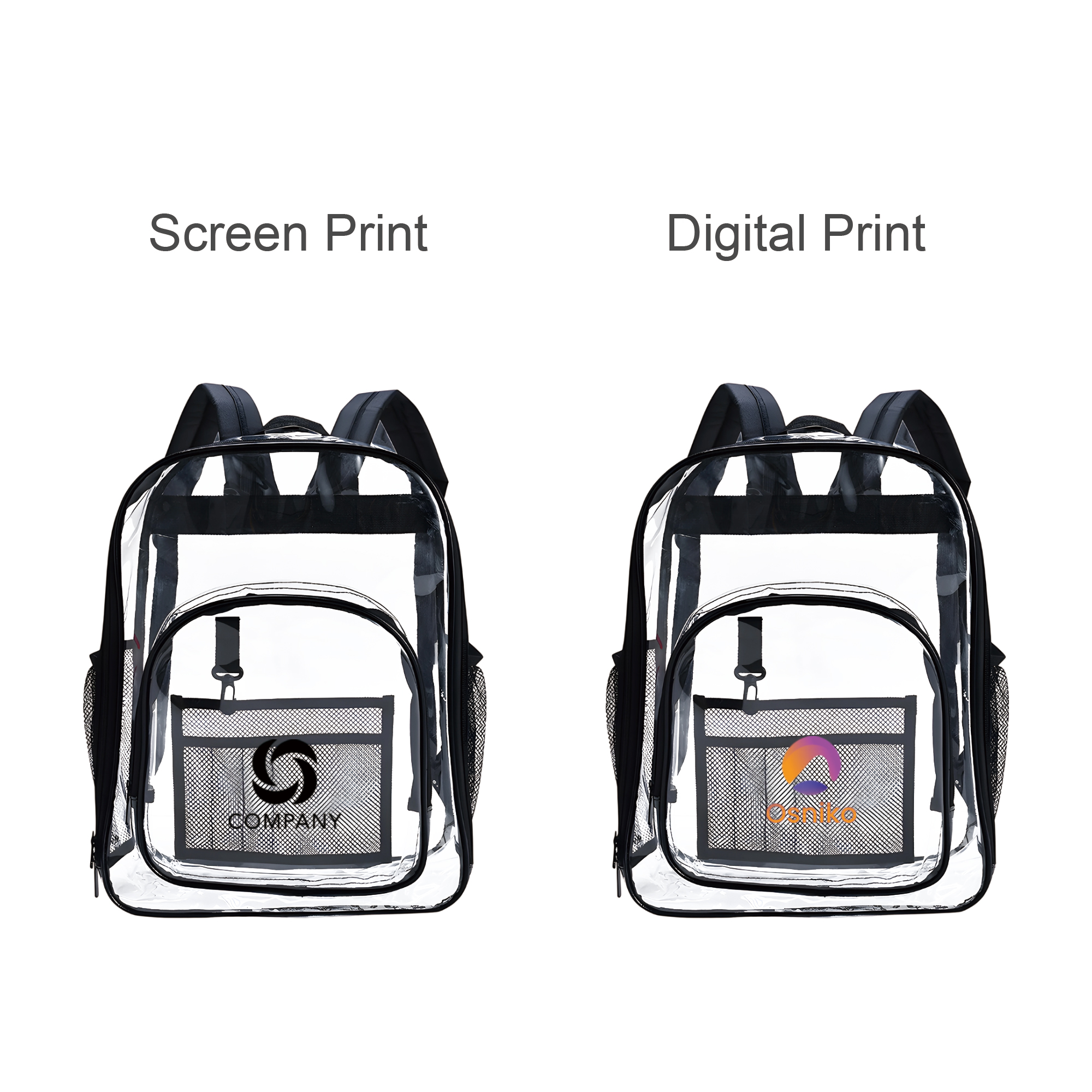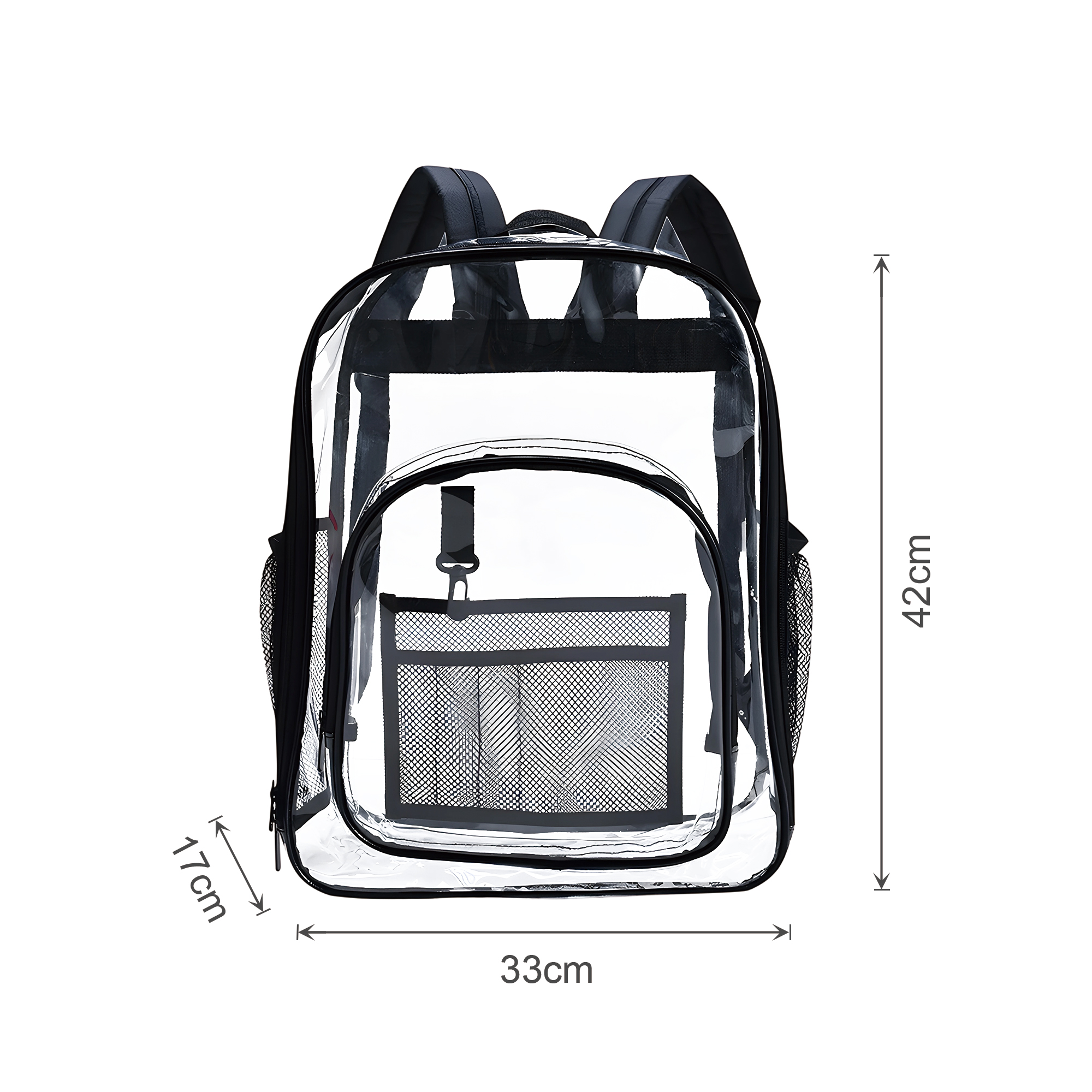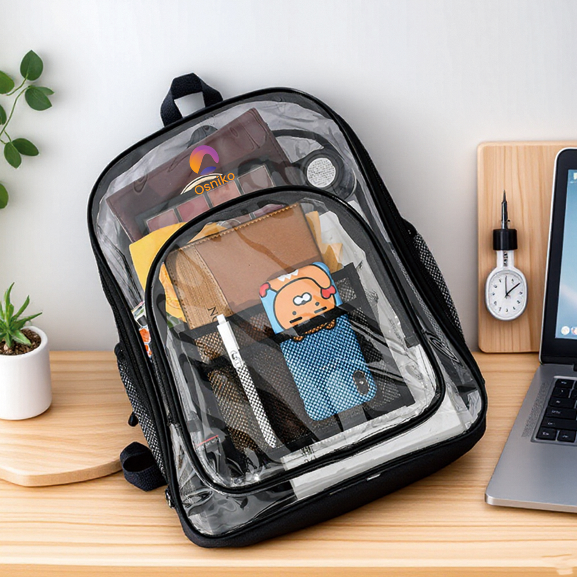 Showcase your brand with our Heavy Duty Transparent Backpack. Soft adjustable straps provides all-day comfort with no pressure. Made from 0.3mm thick transparent PVC. With screen print or digital print to highlight your logo. Built-in mesh compartment keeps items organized and easy to find. Ideal for those who value practicality and style — carry more, stay sorted, and move freely!