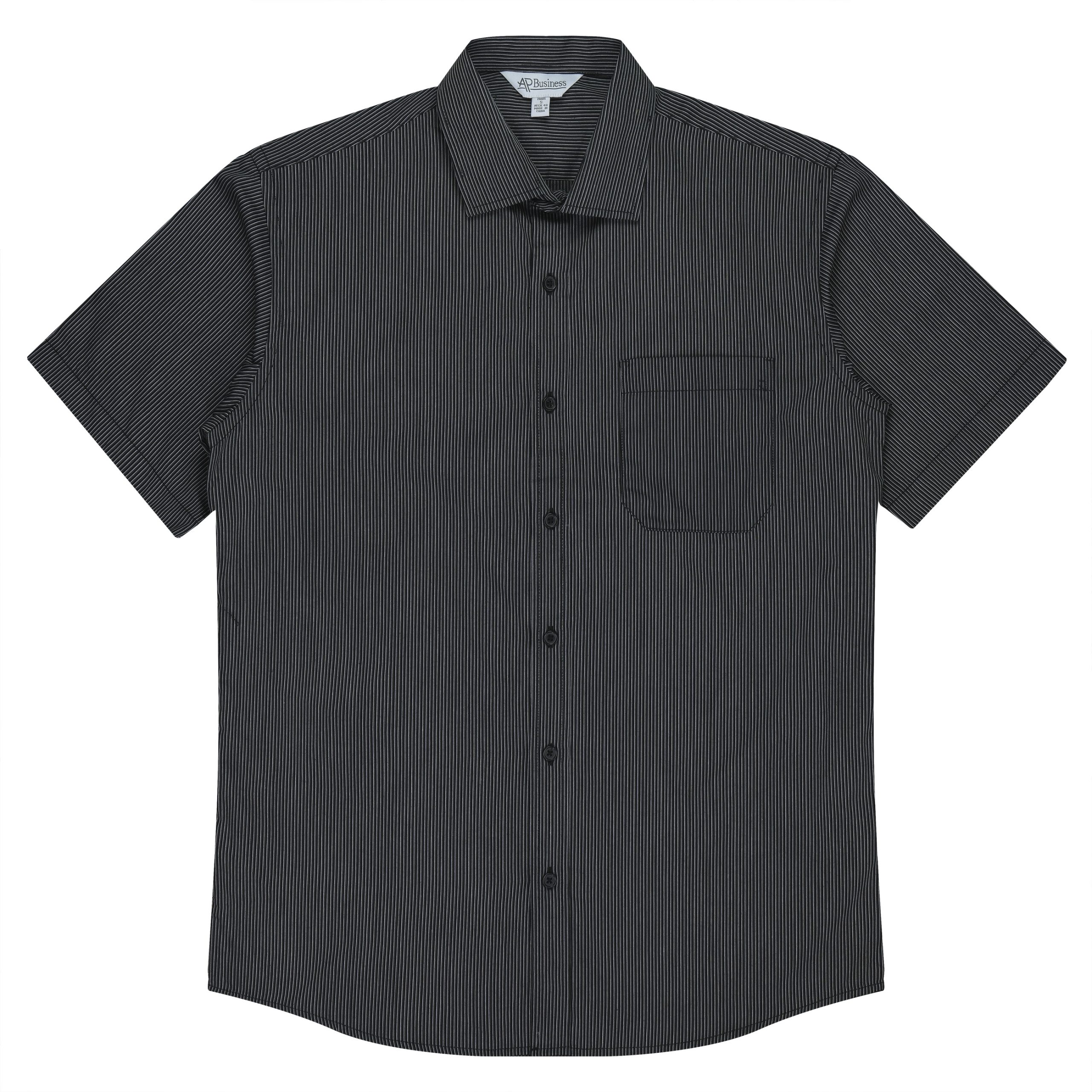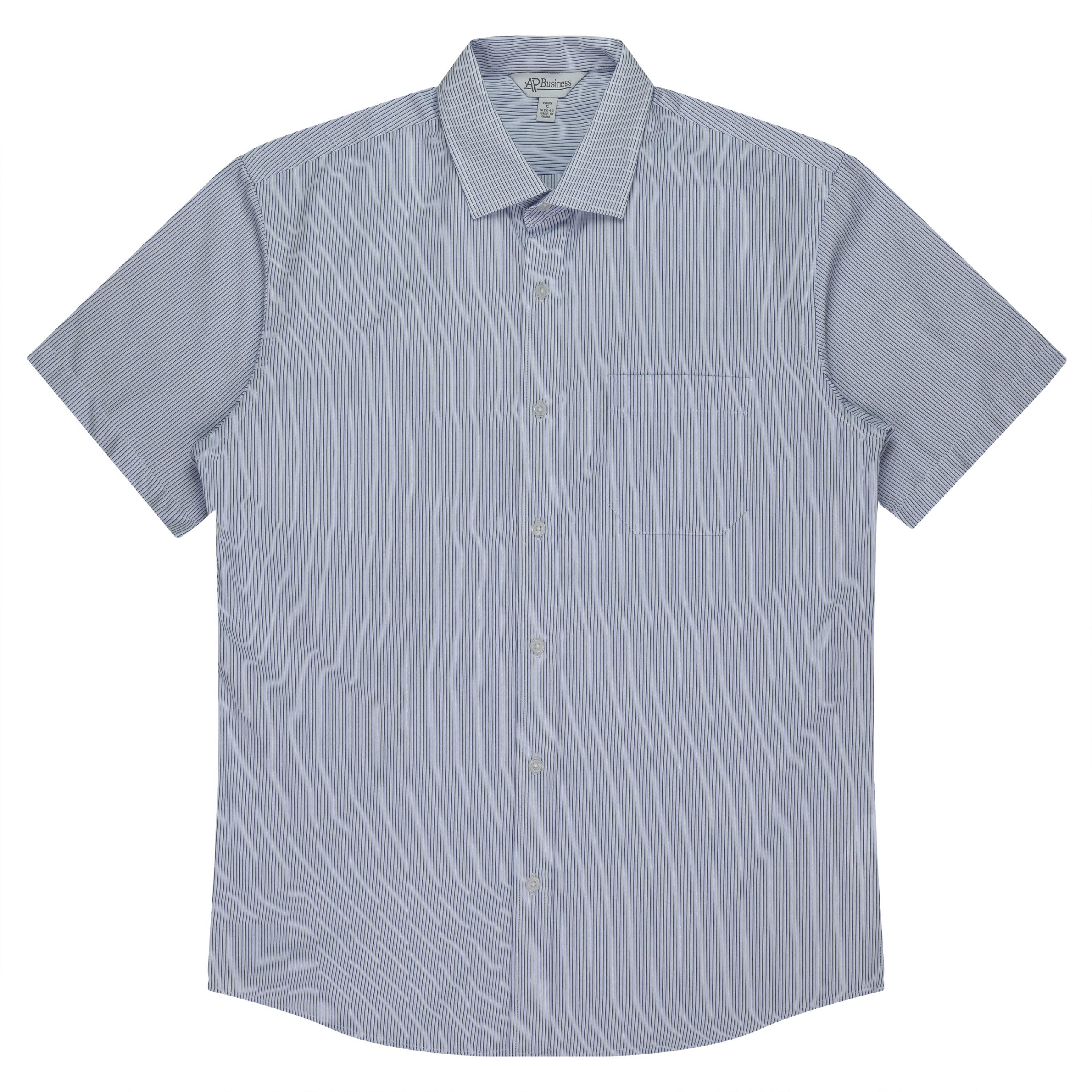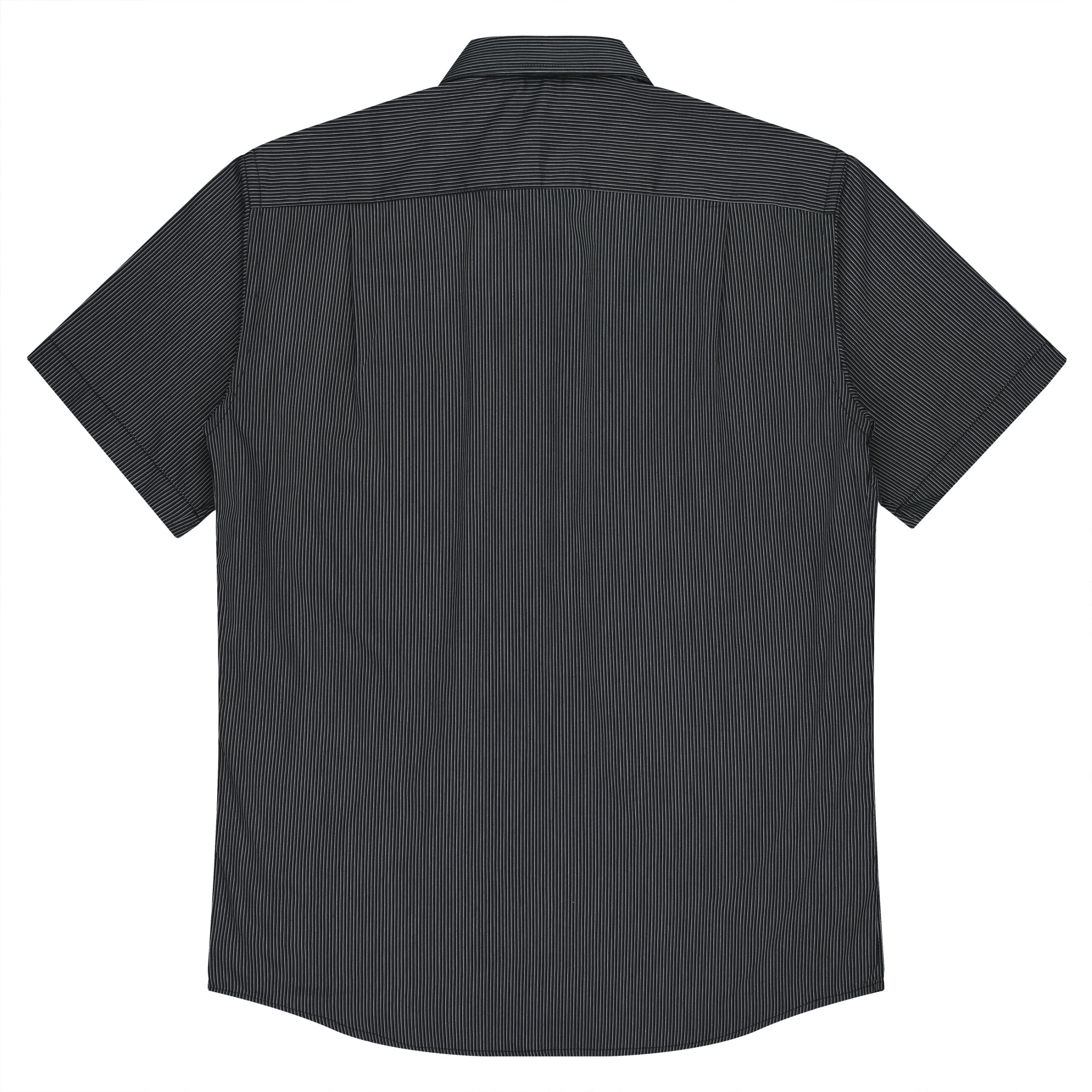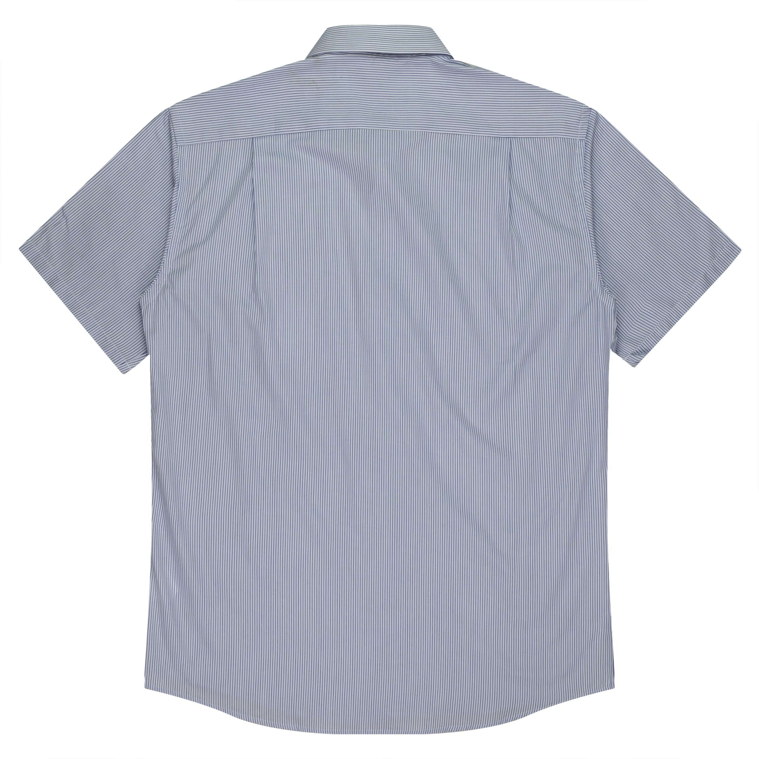A superbly crafted, striped shirt featuring a top stitched and pleated front placket. The collar is top stitched with a contrast directional cut cuff with an angled finish.