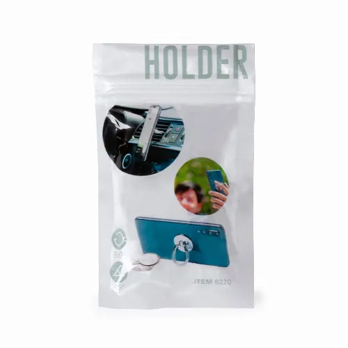 In an elegant design and with 3M adhesive tape, extra strong fixation and residue free when detached from the device. Backside, double holder ring for fingers and vehicle dashboard. Presented in an individual, design bag.