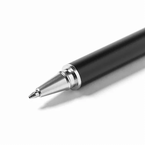 [description] => Sleek design plastic click action pen with solid coloured grip and trim along with a metal clip and silver tip. Parker style black refill.