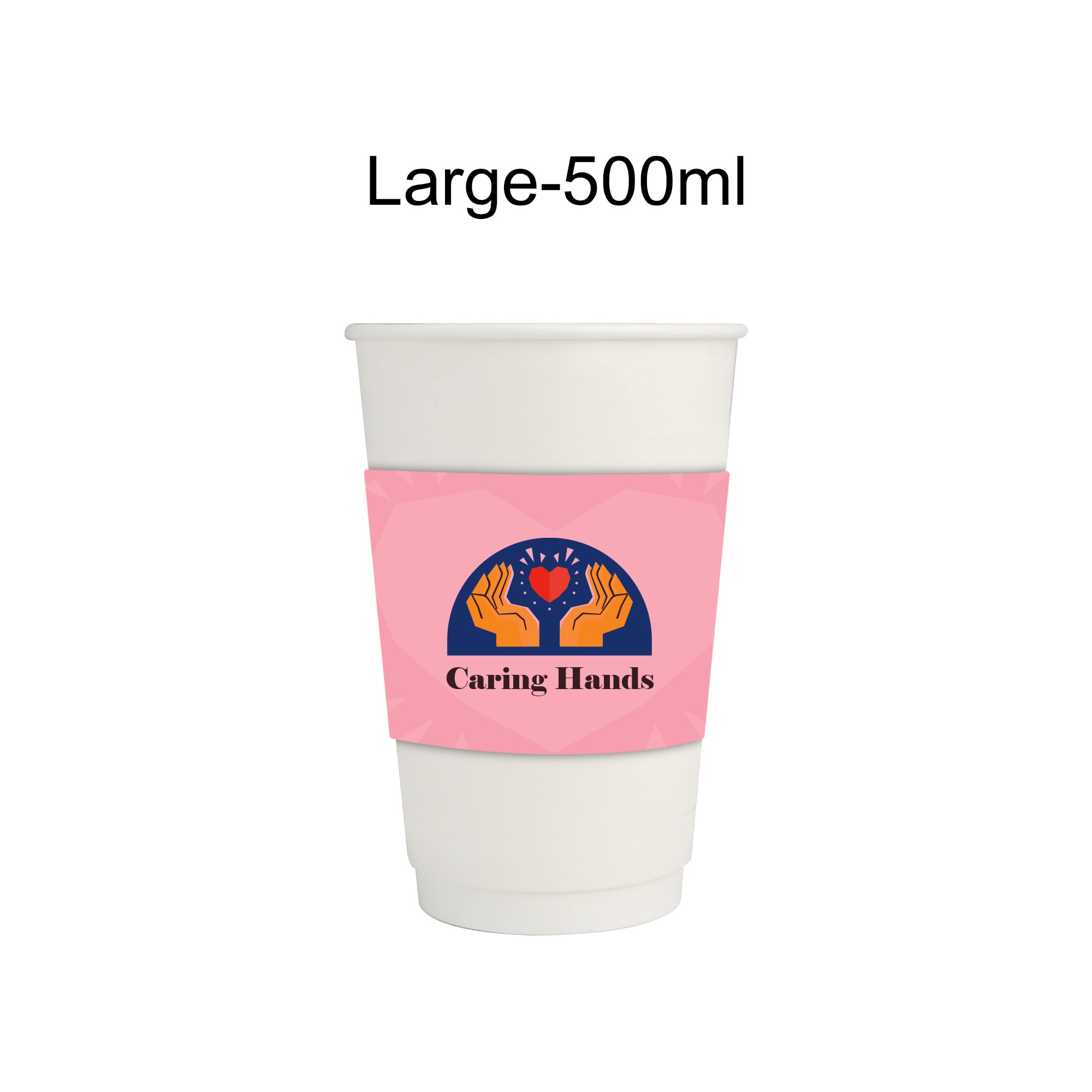 Get your branding seen with our new Home Compostable Aqueous Double Wall Paper Cups with Cup Sleeve! Made from 100% virgin pulp paper and aqueous coating, which is 100% home compostable, biodegradable and no plastic coating. Double-wall construction keeps hot drinks warmer and cold drinks cooler for longer. Includes matching paper cup sleeve for better grip and insulation. Customised with CMYK print to highlight your branding. In addition, enhance your brand experience by pairing your paper cups with white compostable sugarcane lids. Custom Shape Printed Cup Sleeves are also available. Perfect as promotional gifts for cafes, corporate events, promotions, or as branded giveaways.